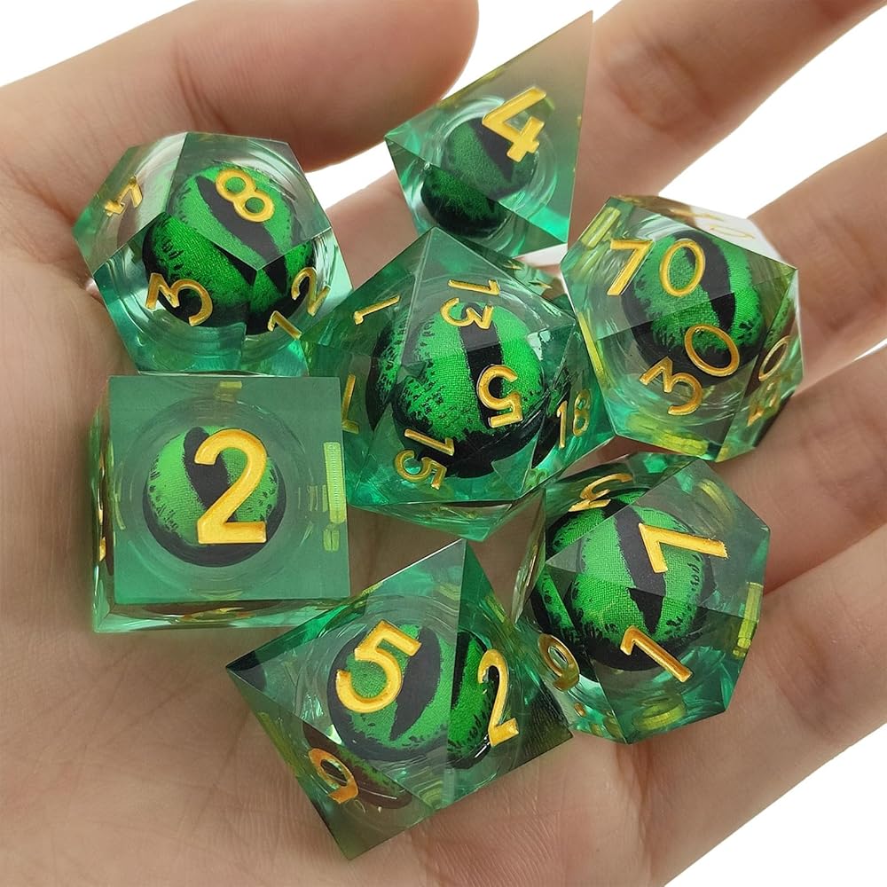 DND Resin Dice Set with Rolling Dragon's Eye, 100% handmade, polished and sanded, high transparency, sharp edges and mirror-like appearance! Use it in your board games. Roll the dice and let them roll! Dice are cool, unique and bring you a different kind of fun, they are great for collecting dice or as a gift.