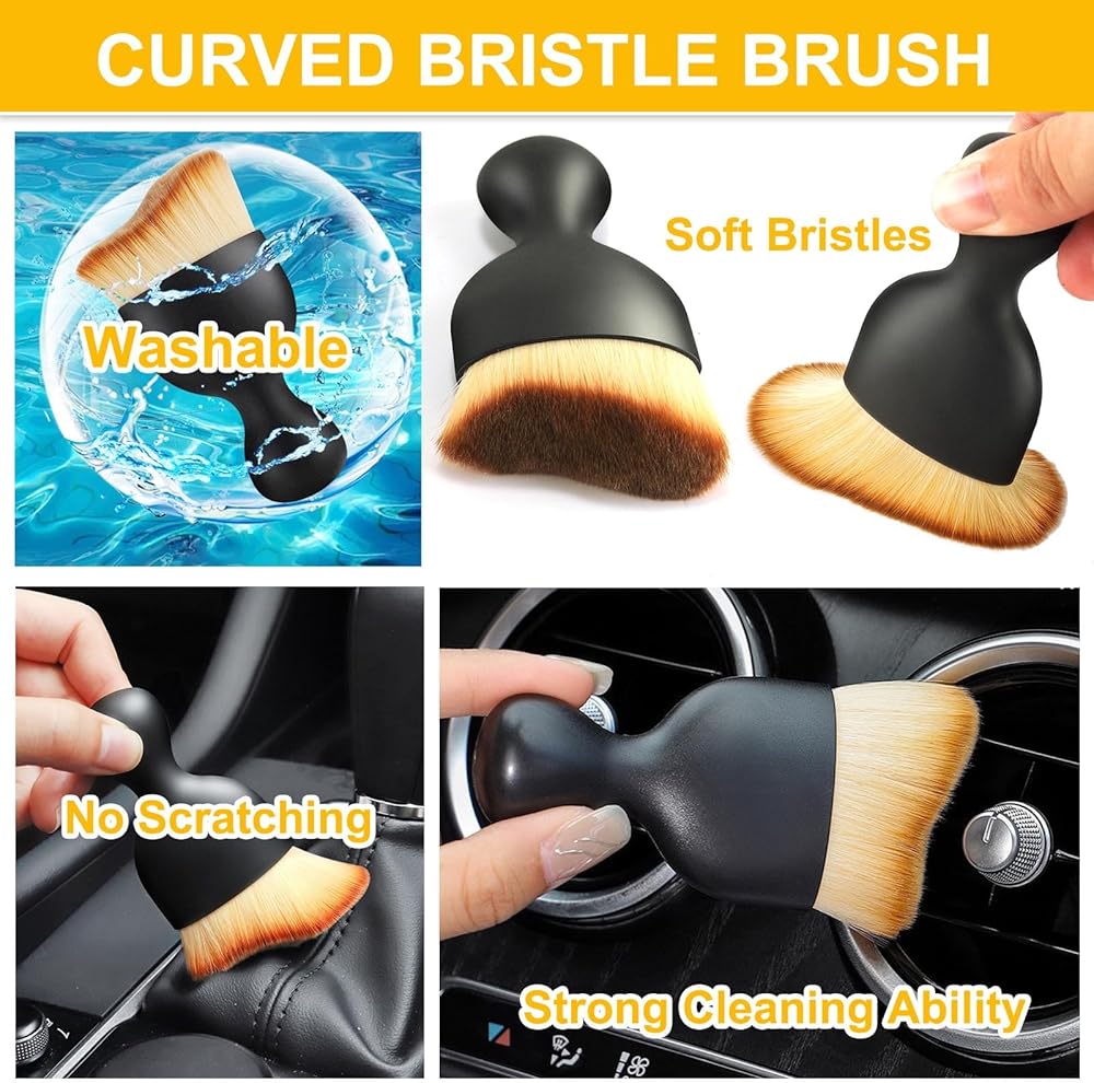 • فرشاة بشعيرات منحنية - تصميم الشعيرات المنحنية يسمح لها بالدخول بسهولة إلى فتحات الهواء والشقوق الصغيرة الأخرى لتنظيف الغبار المخفي. تحتوي هذه الفرشاة على مقبض دائري وسطح أملس لقبضة مريحة.