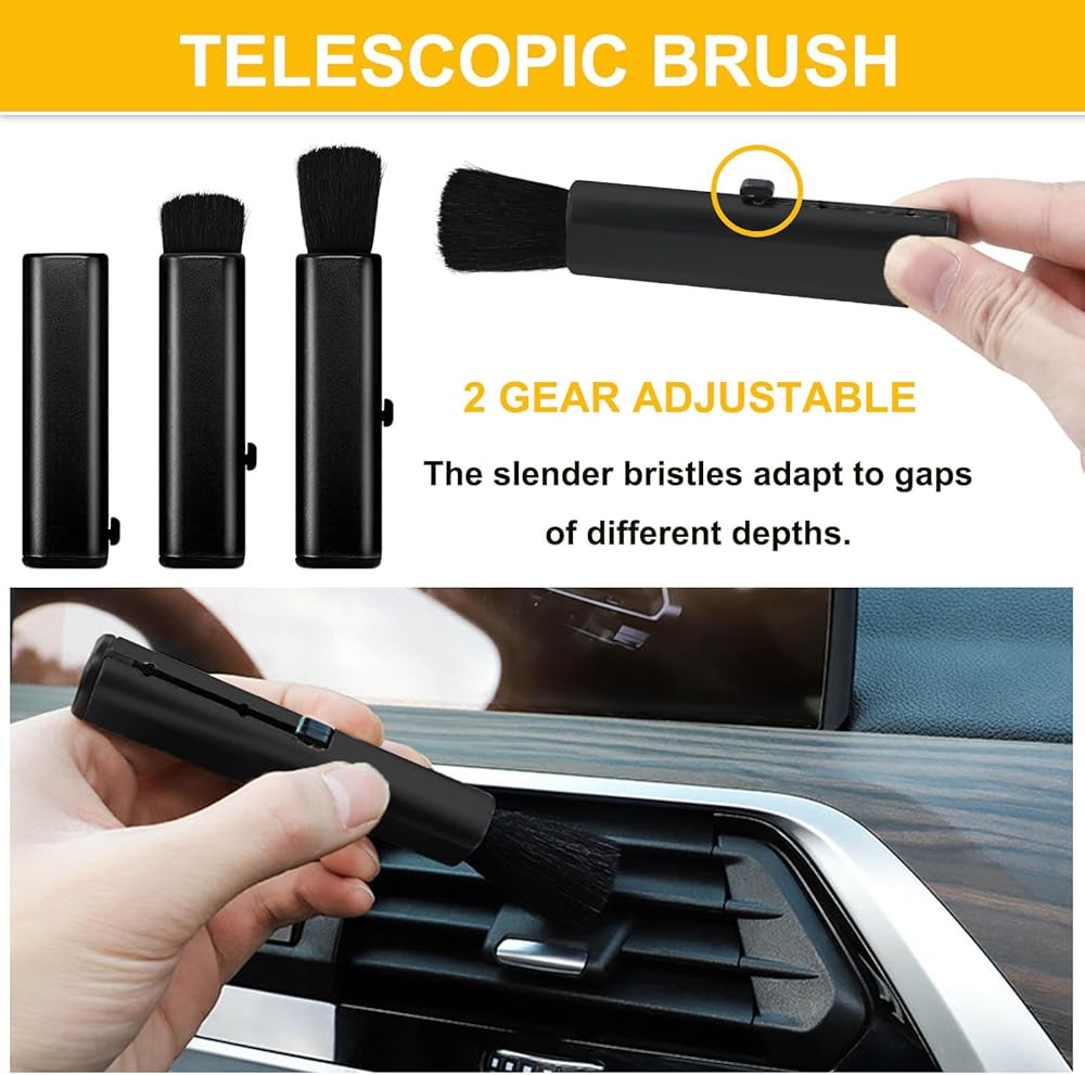 • فرشاة تلسكوبية - تتميز فرشاة التنظيف بتصميم تلسكوبي، ويمكن إخفاء رأس الفرشاة عند عدم استخدامها للحفاظ على رأس الفرشاة نظيفة. حجمها الصغير يمكن أن يتناسب مع صندوق القفازات.