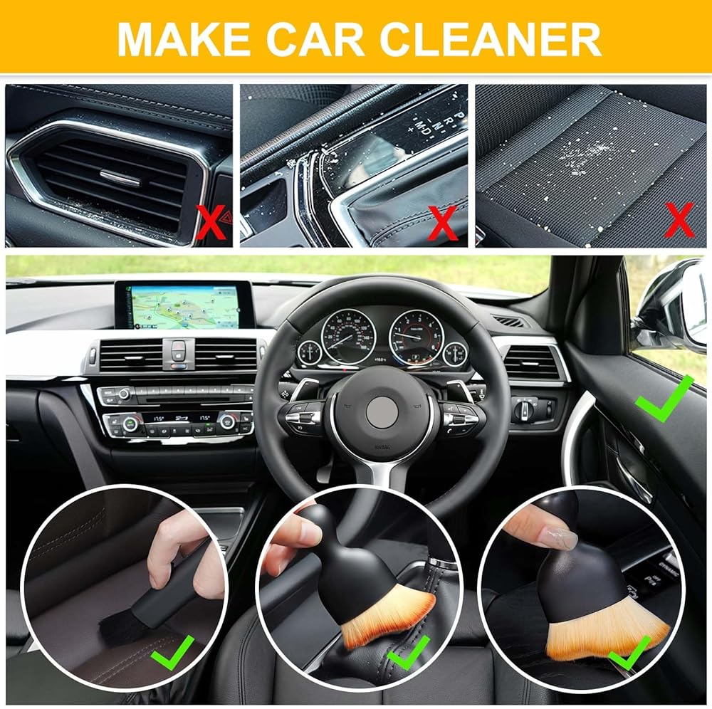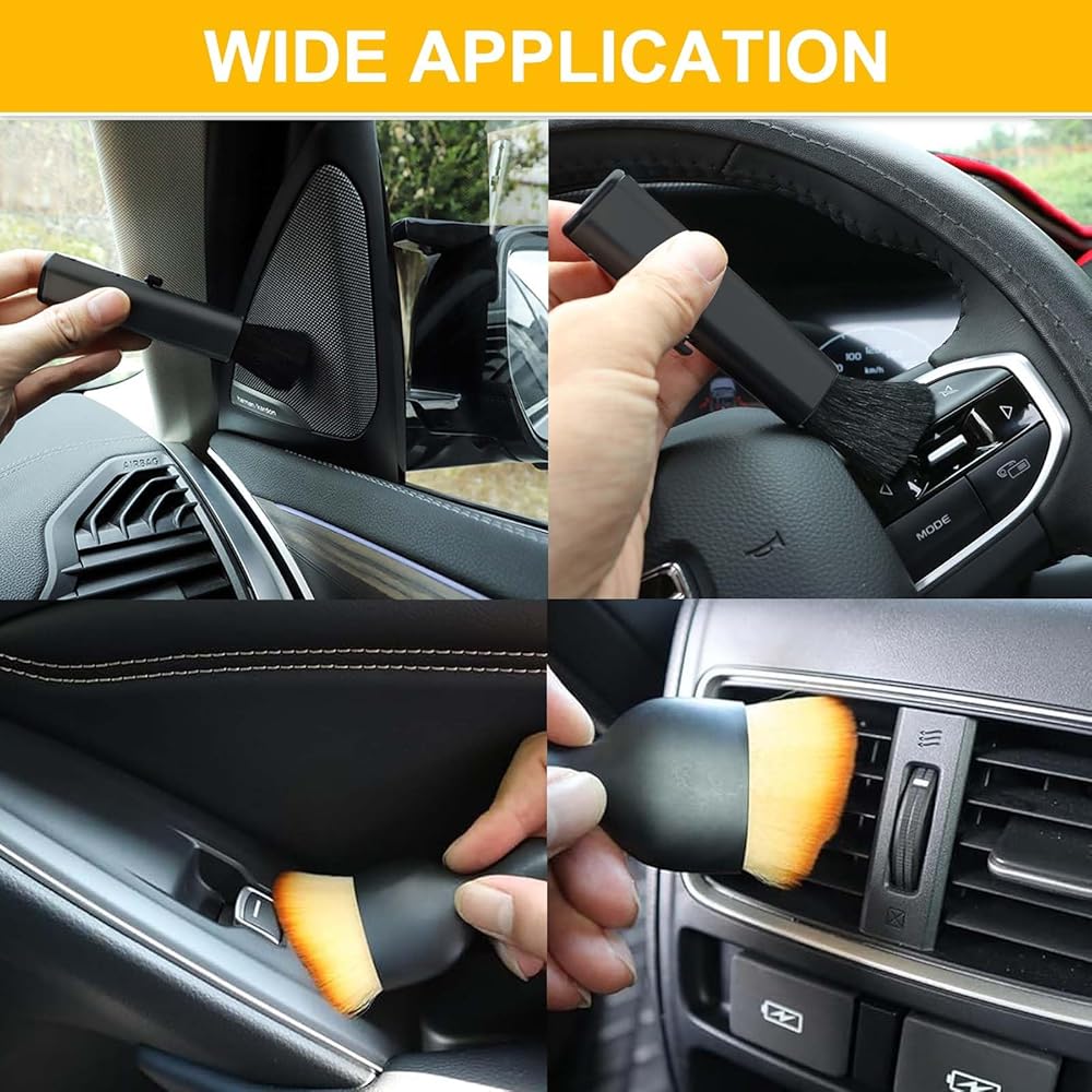• جودة فاخرة - مجموعة فرش تنظيف السيارة مصنوعة من شعيرات متينة ومقبض بلاستيكي. الشعيرات متينة ولن تسقط بسهولة حتى بعد الاستخدام المتكرر.