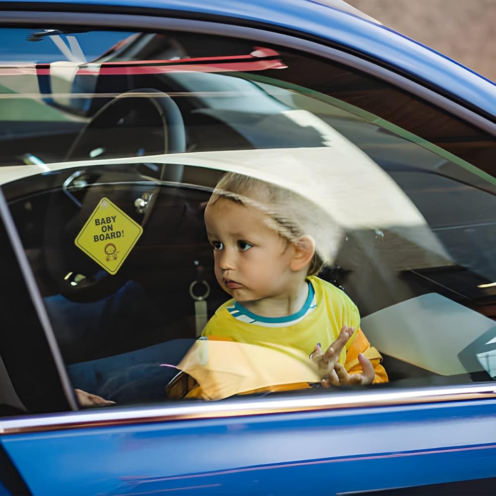 【Child Safety Sticker for Car】: This Baby on Board sticker has a bright yellow color combined with a funny and cute pattern, it can quickly attract attention, other drivers who see this sign will drive carefully, keep distance from your car, avoid collisions or noise, and ensure baby's safety. If you have this sign in your car window, you will feel more at ease when your baby is sleeping or playing in the car.