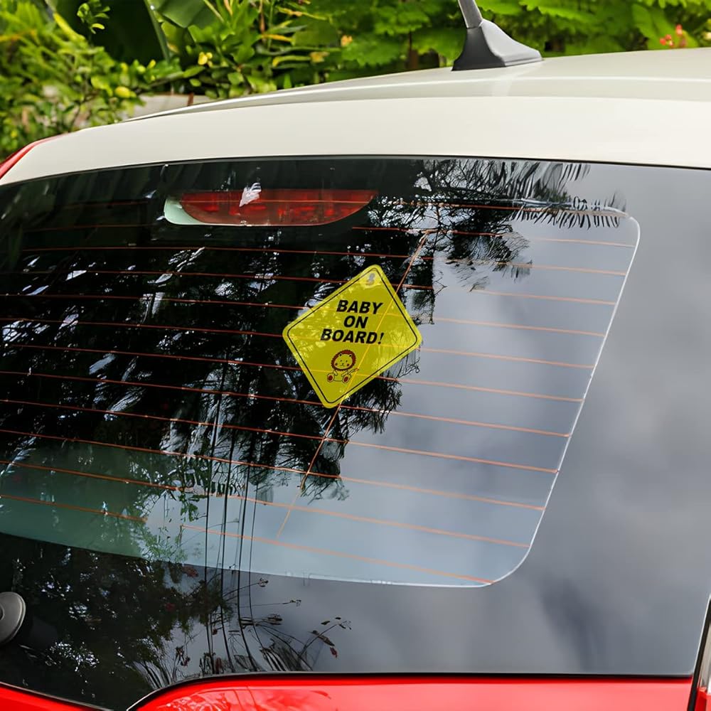 【Adorable Design】: This window bumper sticker measures 4.7"x4.7", the size is just suitable for all vehicles, it doesn't block the rear view. There are many adorable patterns on it, the giraffe, the little lions and baby pattern, it is a cute decoration for your car. If you have a baby and always take him or her out, we highly recommend you to have this product for your baby's safety.