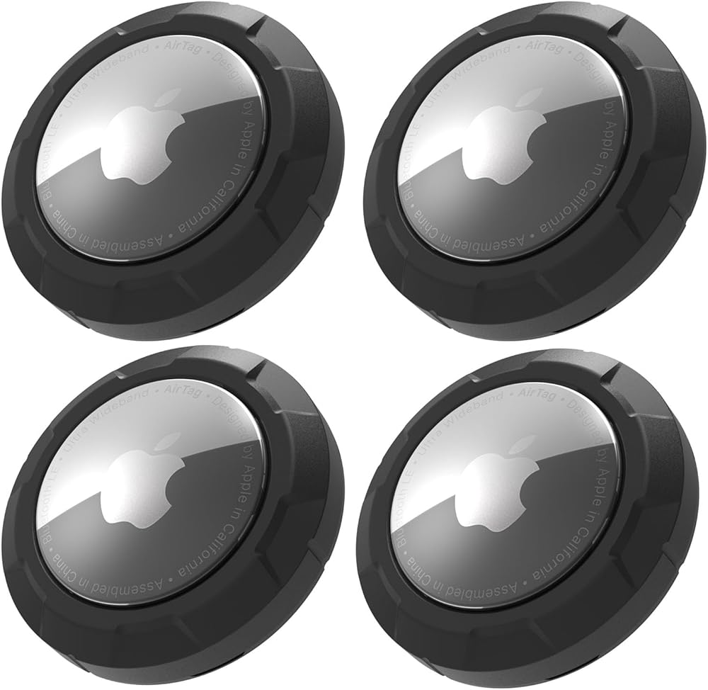 Airtag Holder, Airtag Mount with Adhesive Sticker, Airtag Case Sticker for Bike Wallet TV Remote Drone Camera Luggage Hidden (4 Pack Black)