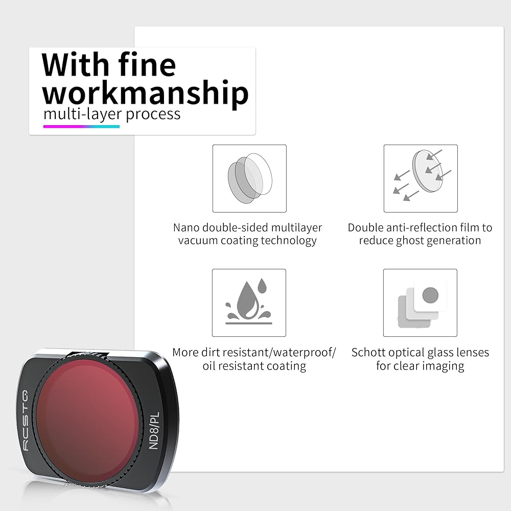 📟📟LIGHTWEIGHT: This DJI Pocket 3 nd filter set is made of lightweight plastic and glass with multi-layer coating technology for extra protection and enhanced functionality. Its individual weight is only 1.2g, which will not affect the flight of the drone and prevent water droplets or oil from remaining on the lens surface
