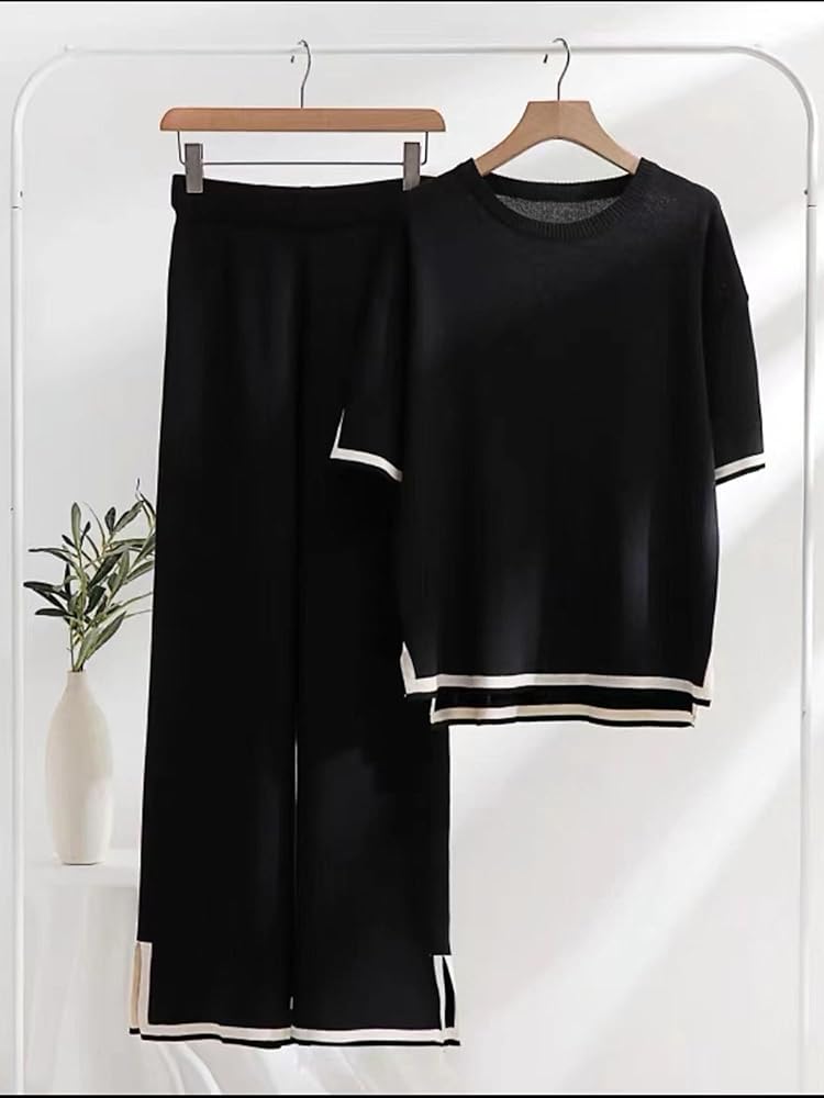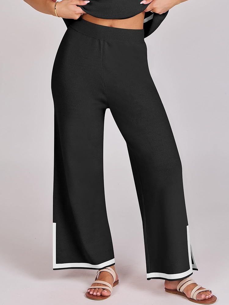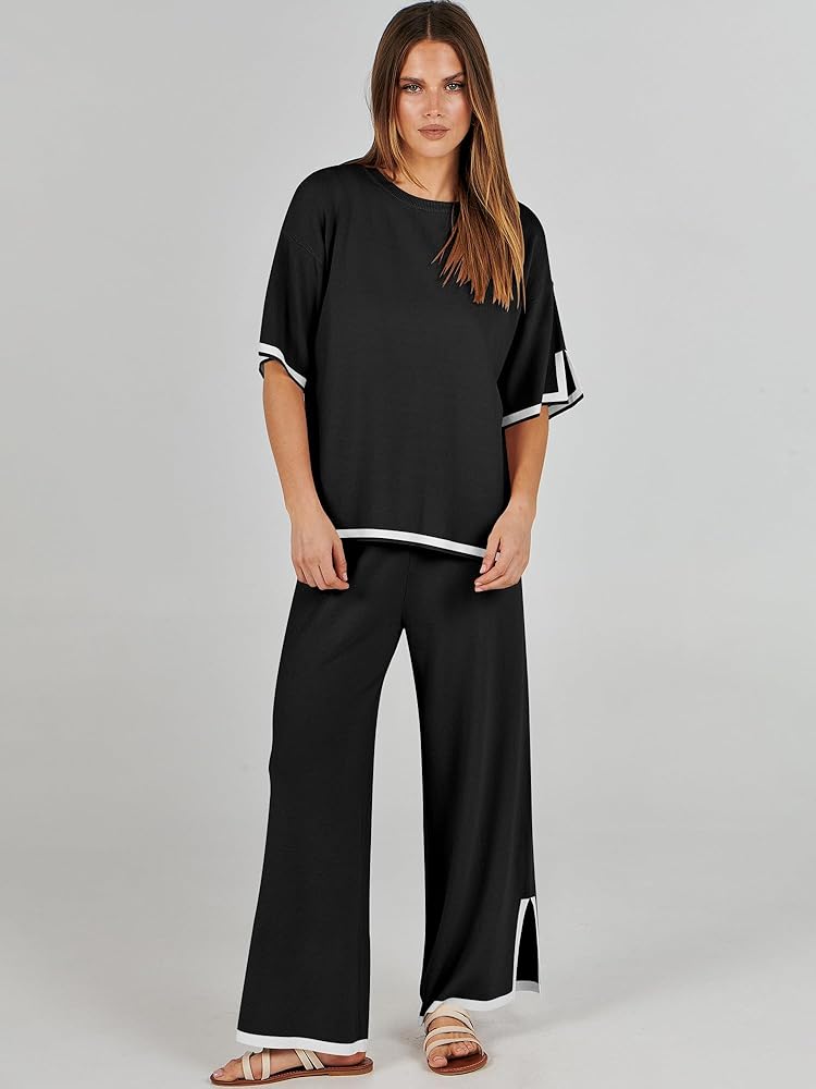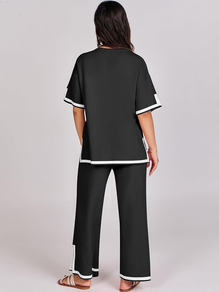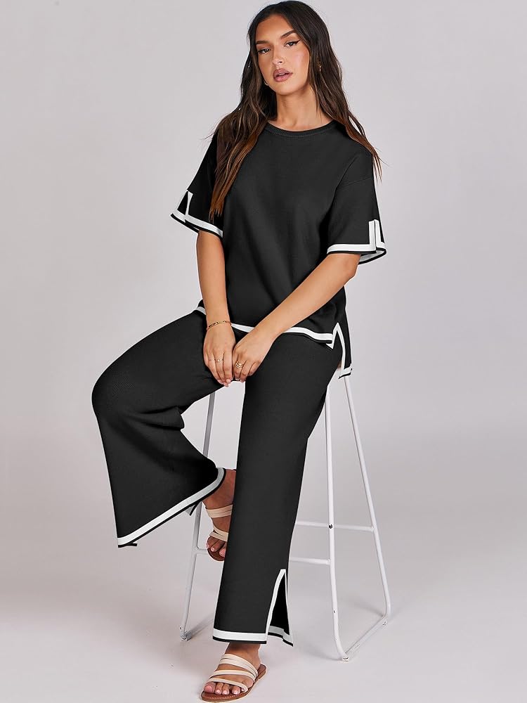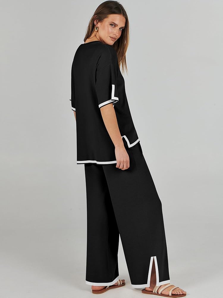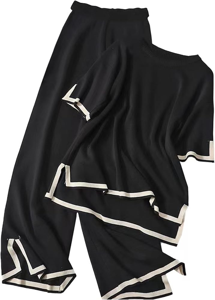 【Design】Lounge sets are designed with a crew neck, short sleeve, palazzo sweater high waisted wide leg flowy comfy elastic waistband dress pants, drop shoulder, side split hem, so you can easily create a stylish chic look, the loungewear set so versatile you can wear it any way you want.