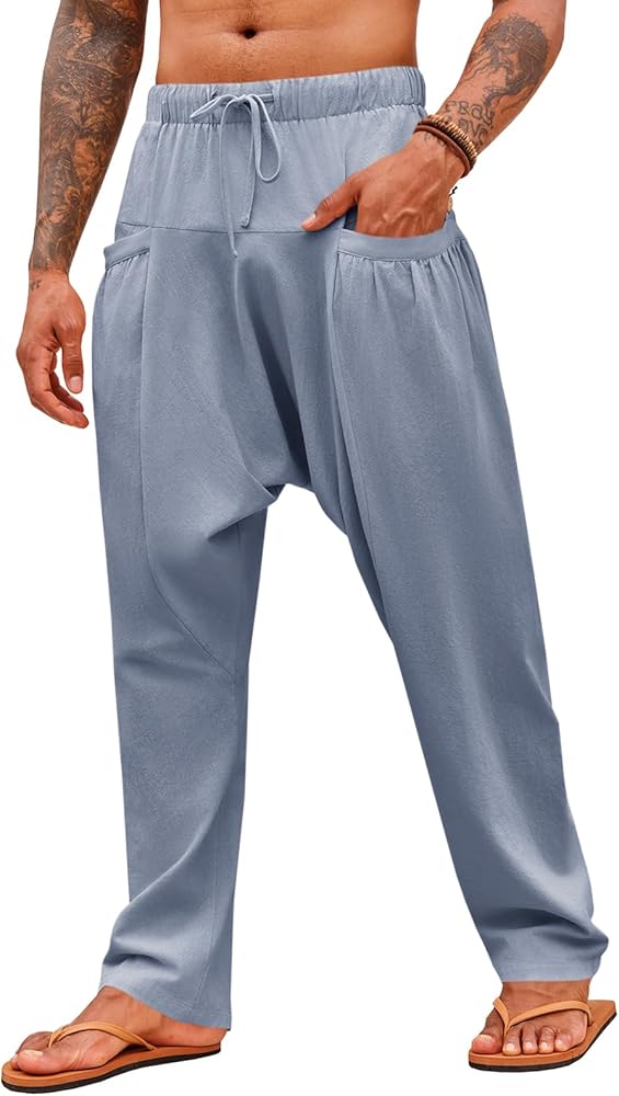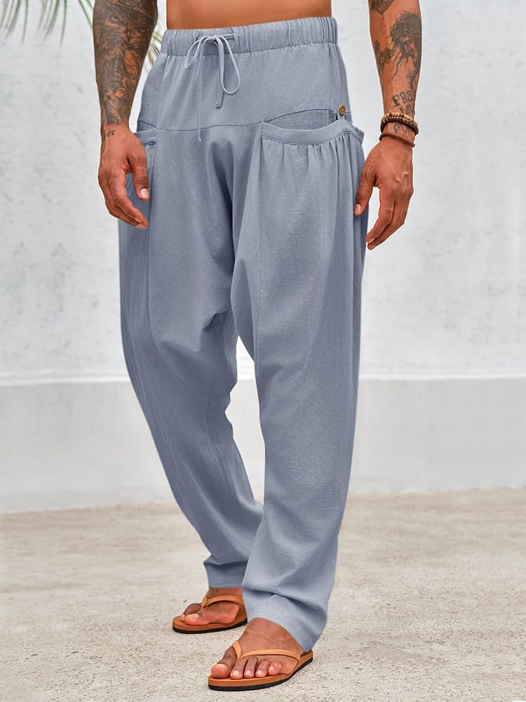 • 【مناسبات متعددة】 سراويل الشاطئ الرجالية الفضفاضة مناسبة للارتداء اليومي الكاجوال، وملابس الشارع، والهبي، والشاطئ، وحفلات الزفاف، والحفلات، واليوغا، والصالة، والمنزل، والعطلات، والعطلات، والترفيه، والمواعيد، والتسوق. يمكنك رفع مستوى أسلوبك دون عناء مع الاستمتاع بأقصى قدر من الراحة.