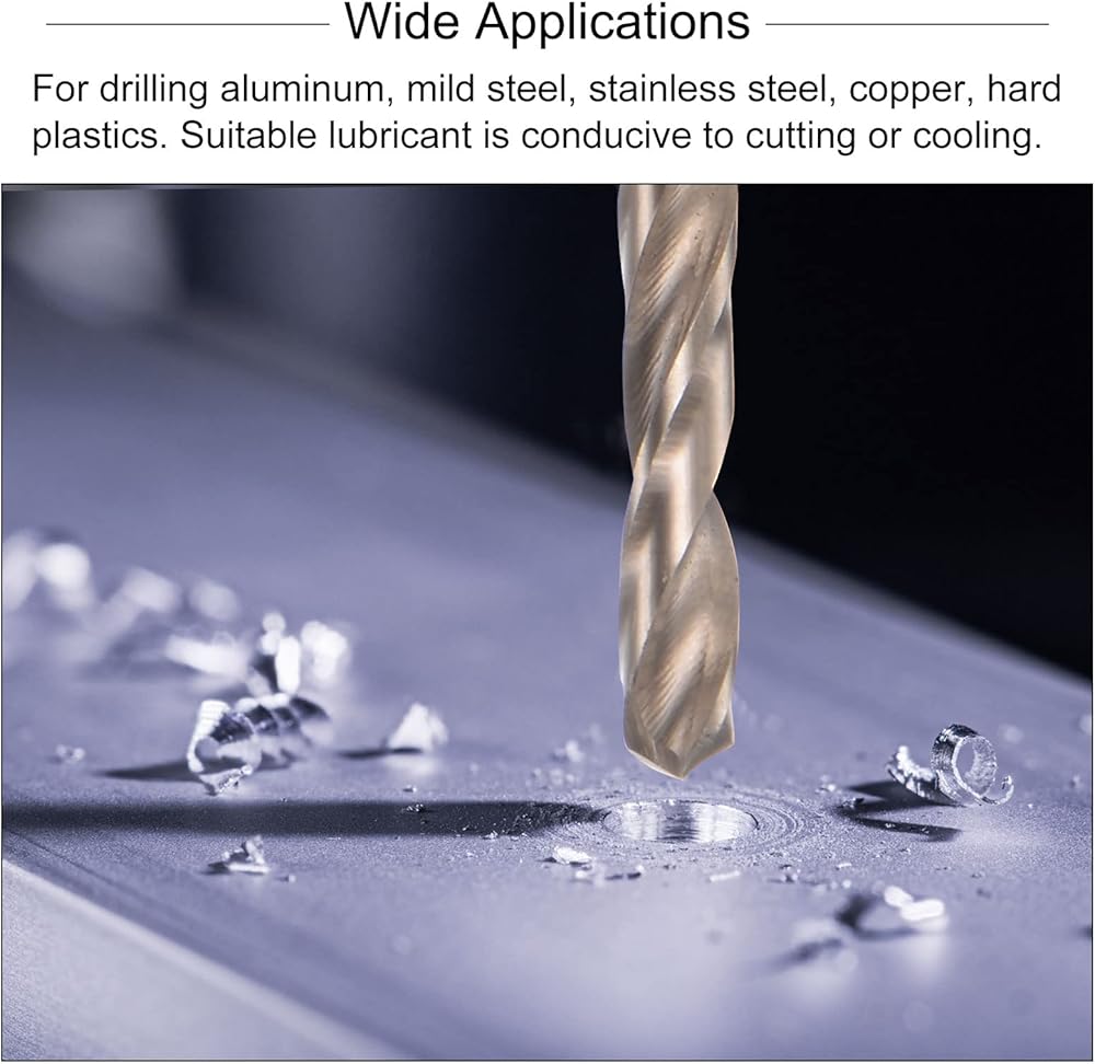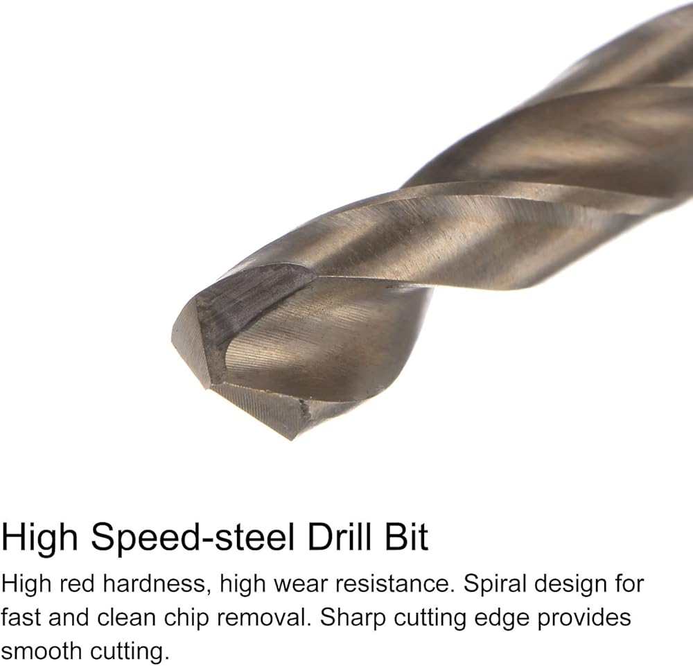 • Drill Bit: Spiral chip space design for fast and clean chip removal. Sharp cutting edge provides smooth cutting and no glitches. M35 5% cobalt high speed steel tool features high hardness (HRC65-66) and high red hardness, high wear resistance.