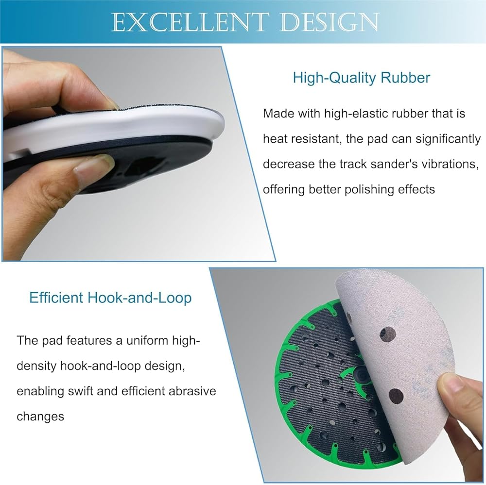 • High-quality Rubber Material: Made with high-elastic rubber that is heat resistant, the pad can significantly decrease the track sander's vibrations, offering better polishing effects and thereby improving the results.The super cushioning contributes to better results on contours.