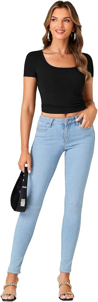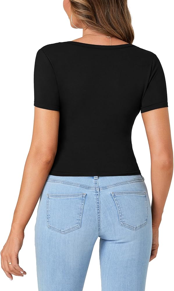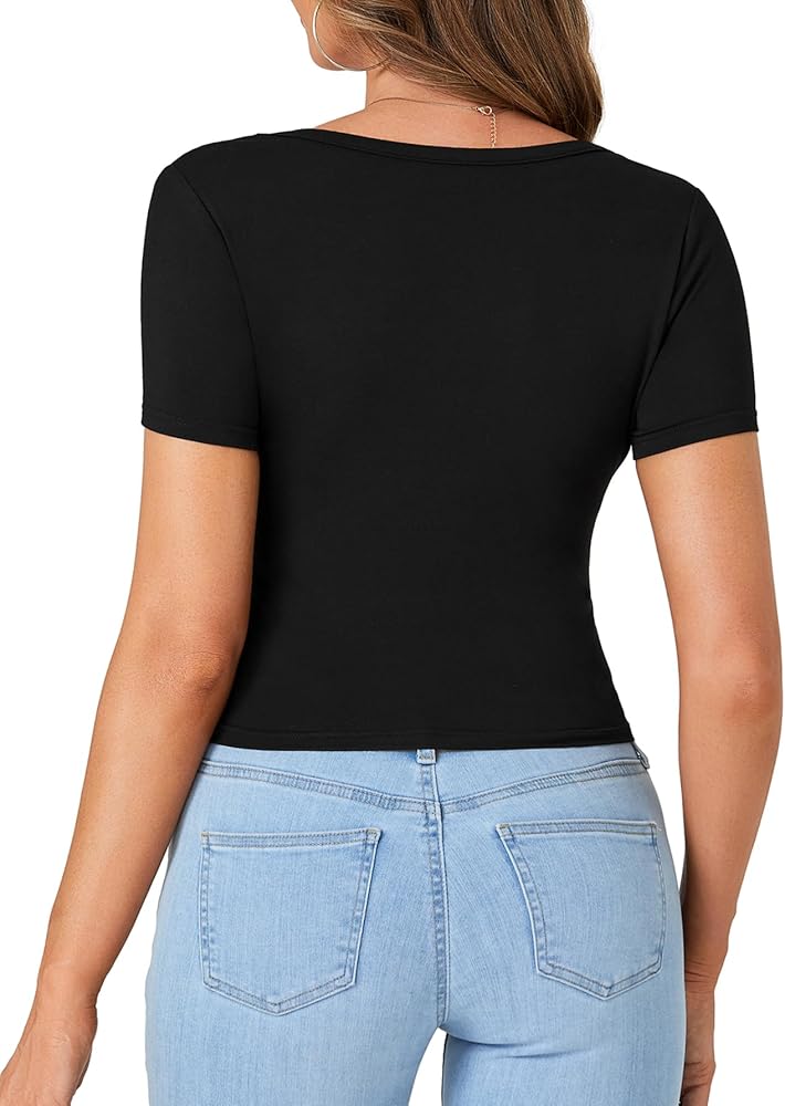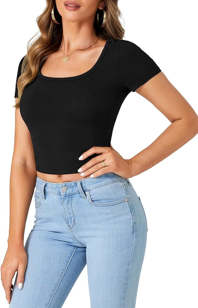 المواد: القميص القصير ذو الأكمام القصيرة والرقبة الواسعة مصنوع من نسيج قابل للتمدد. تي شيرت لطيف ذو مقاس نحيف للفتيات المراهقات، ناعم، قابل للتمدد، مسامي، مريح لبشرتك ومريح للارتداء في الصيف الحار.