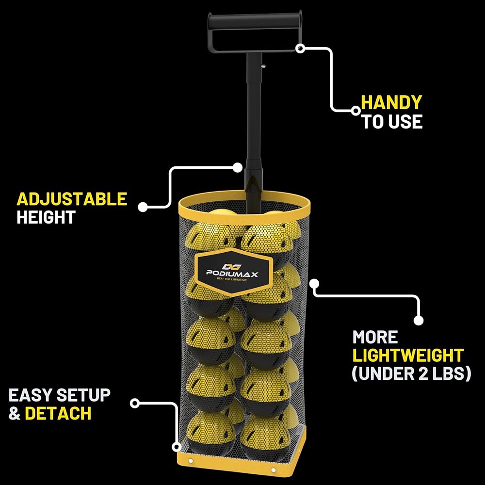 خفيف الوزن أكثر - بالمقارنة مع جامعي الكرات التقليدية، تم تصميم مجمع الكرات PodiuMax مع حقيبة تخزين شبكية لتكون خفيفة الوزن، لذلك لن تشعر بالتعب أو الشعور بالإجهاد على عضلاتك أثناء استخدامها.