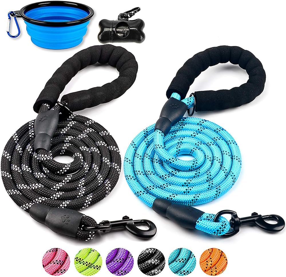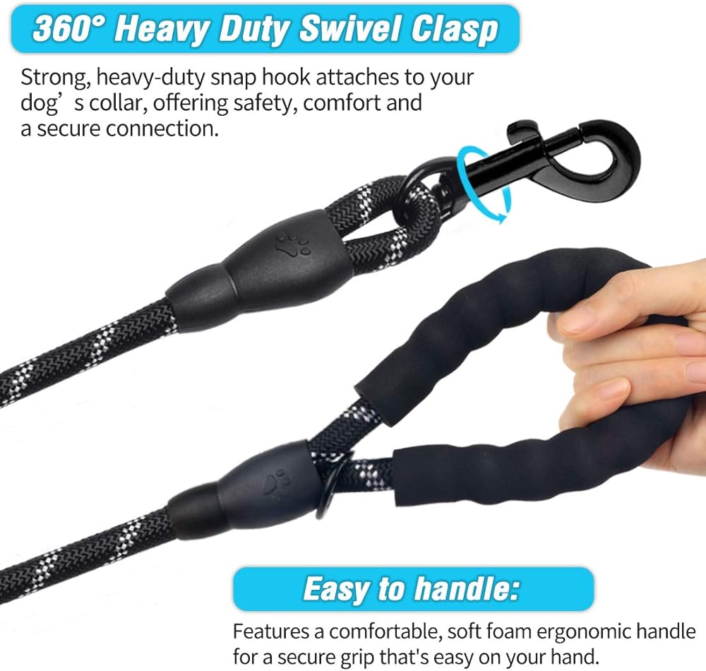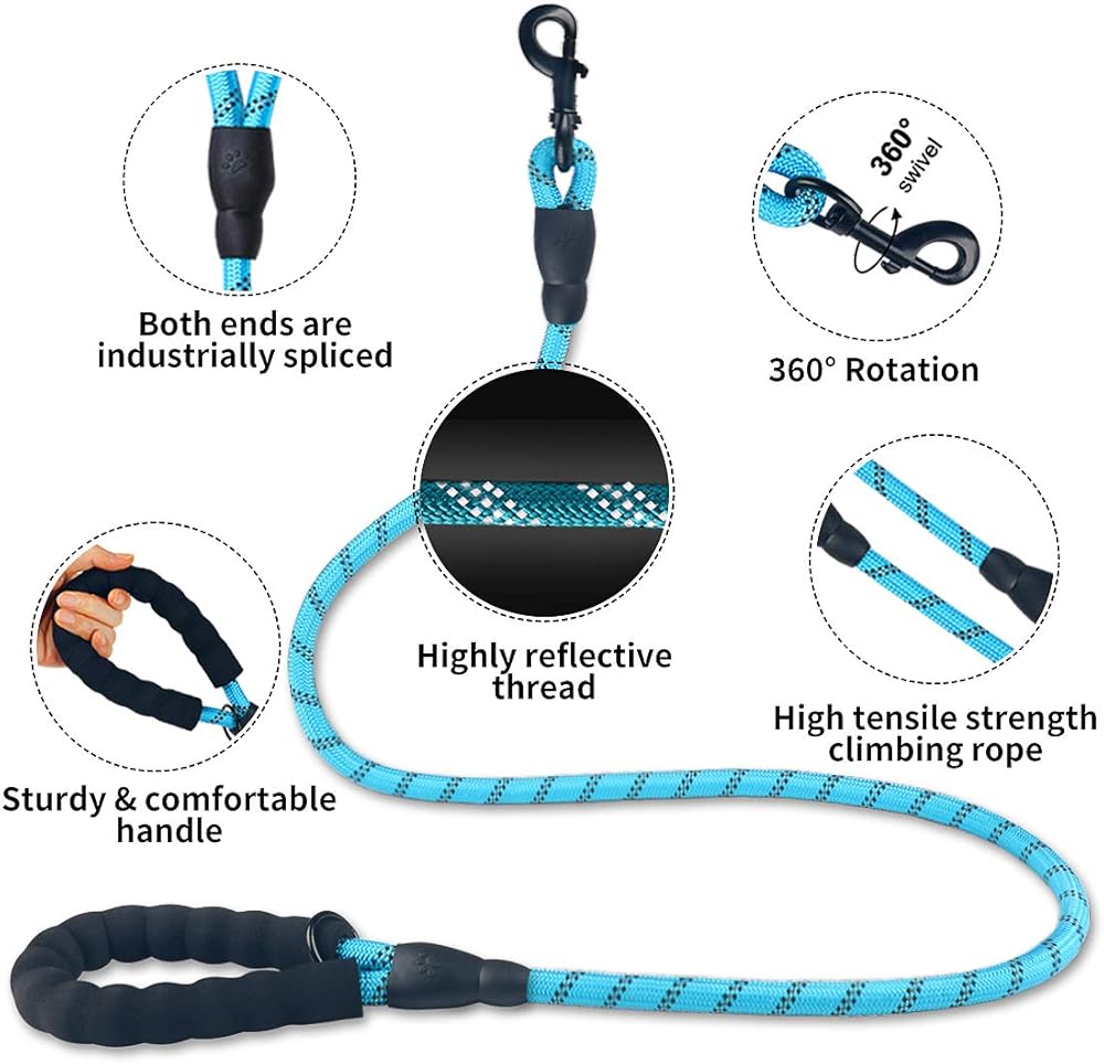 شديدة التحمل - هذه المجموعة المكونة من مقاود للكلاب مصنوعة من أقوى حبل تسلق الصخور بقطر 1/3 بوصة وخطاف دوار متين مقاوم للصدأ 360 درجة، مناسب للكلاب الصغيرة والمتوسطة والكبيرة.
