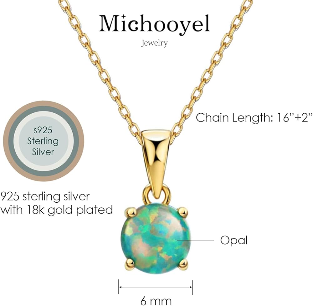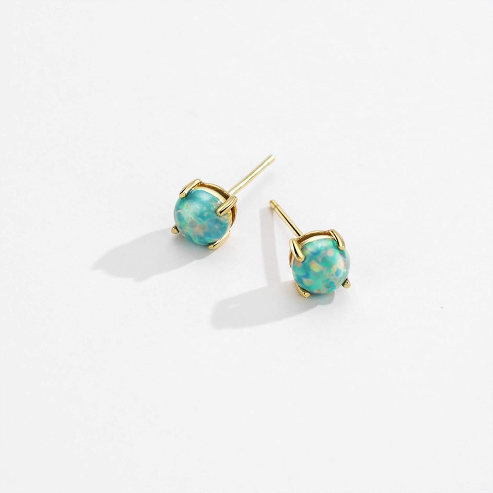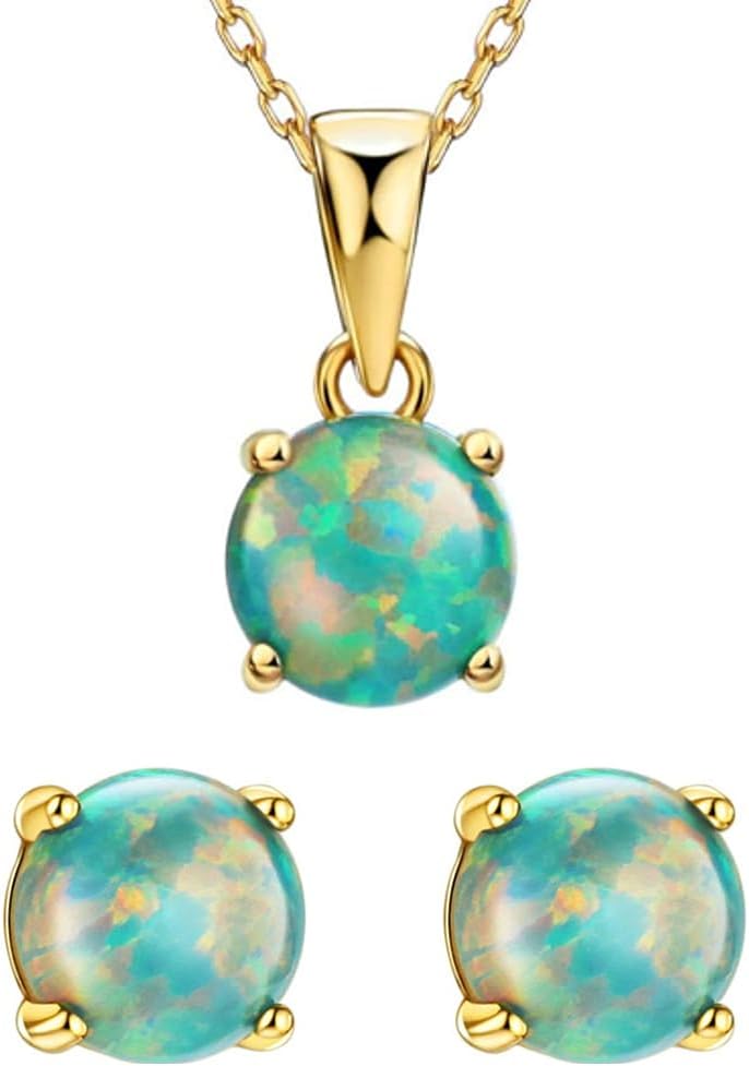 Michooyel 18K Gold Plated Sterling Silver 5mm Green Opal Stud Earrings and Pendant Necklace