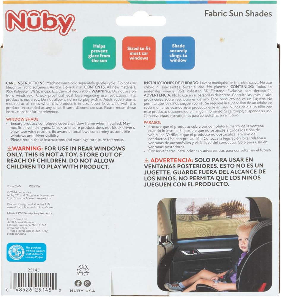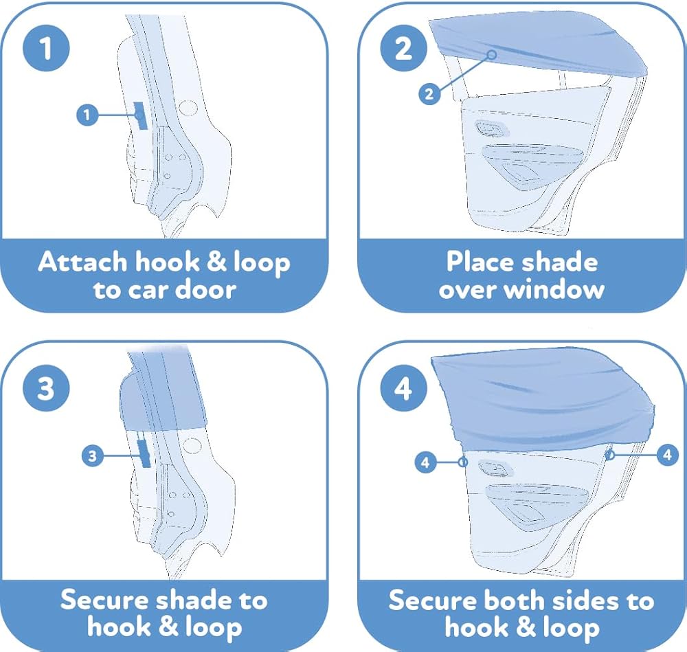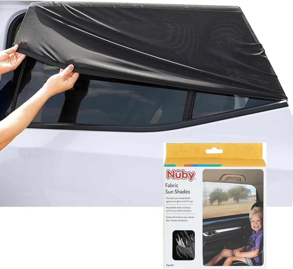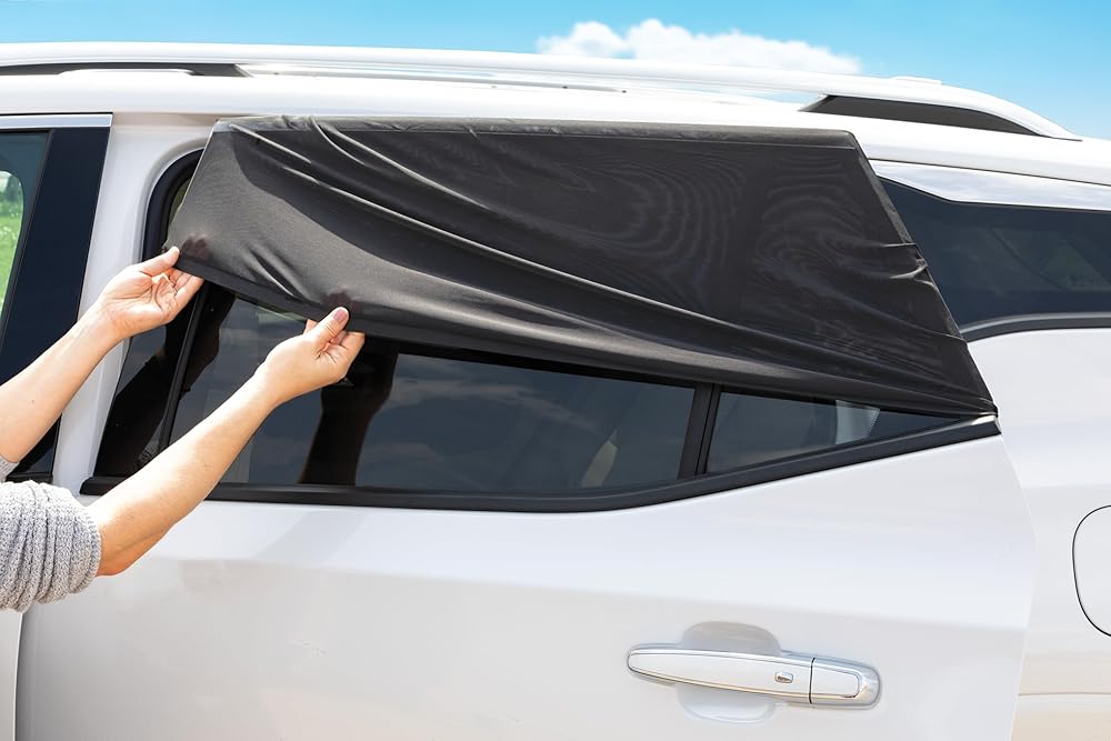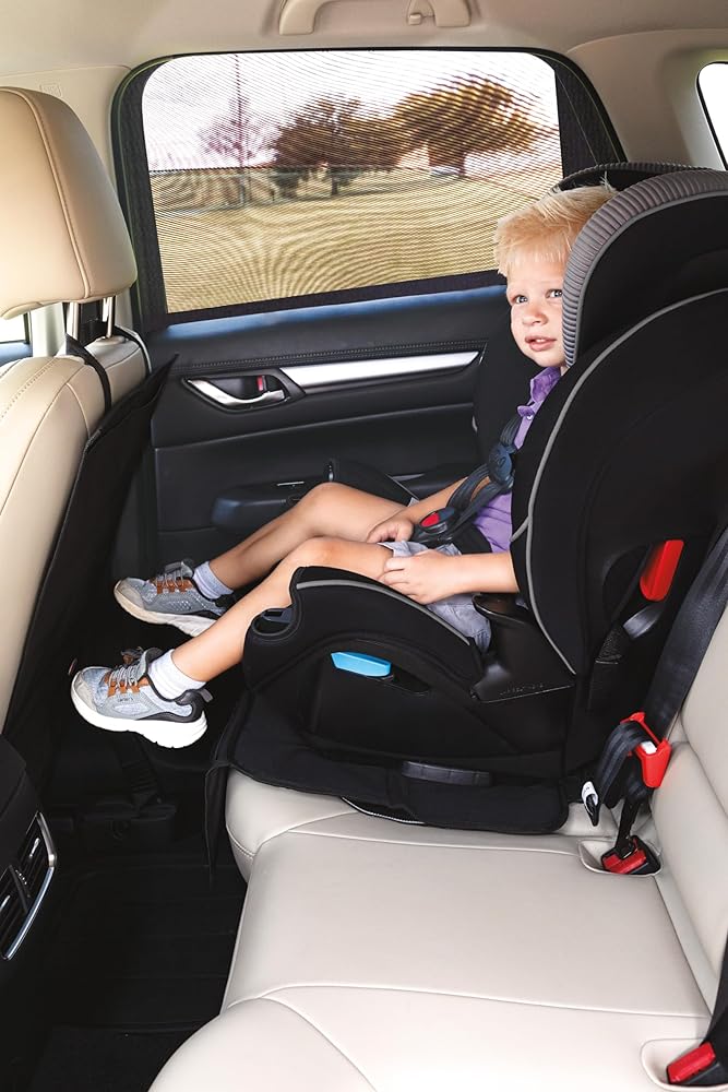【2 PACK SUN PROTECTION SIDE WINDOW SHADES】 The two pack car sunshades block sun/ UV rays, glare, and heat without blocking child's view, maintaining driver visibility.