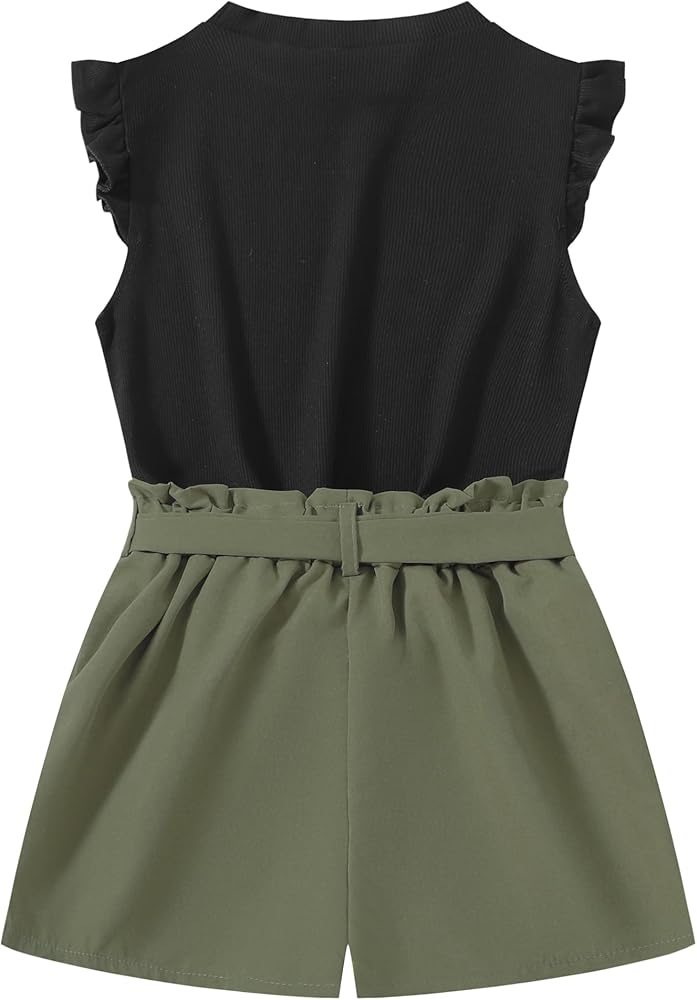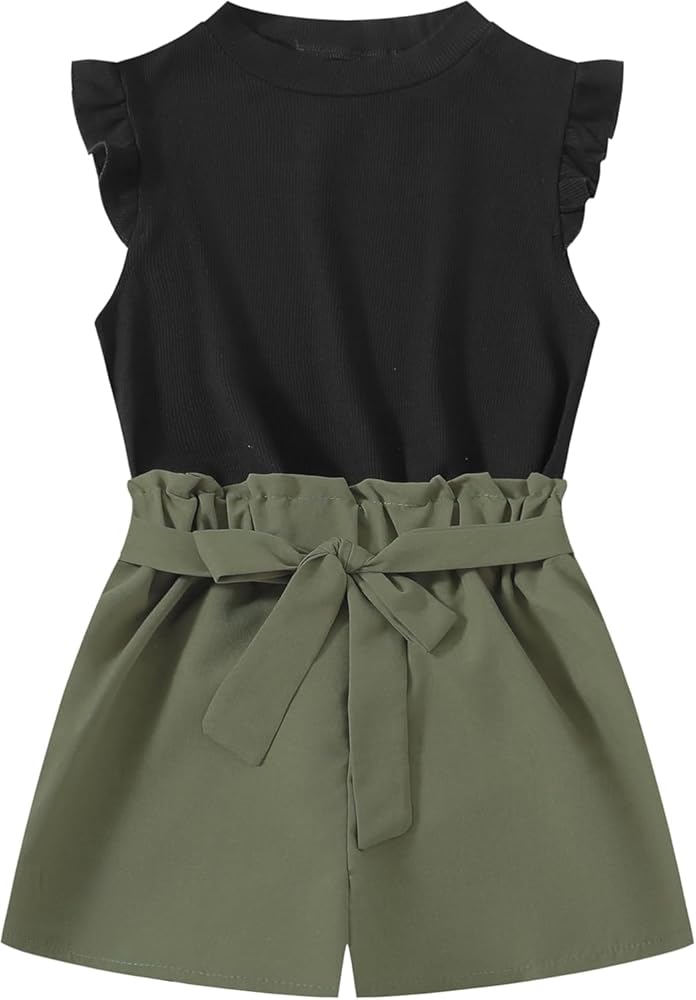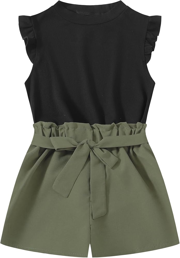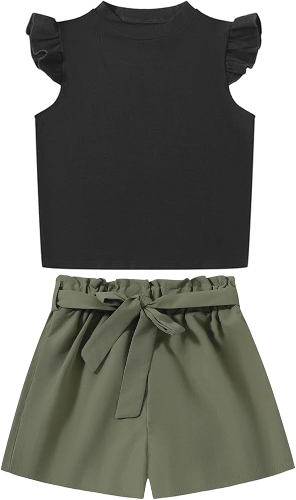 Feature: Simple crew neck design, basic solid color, cute cap sleeve Tops with ruffle trim, shorts are elastic waist design make kids more convenient and comfy. Girls will love this fashionable summer outfit!