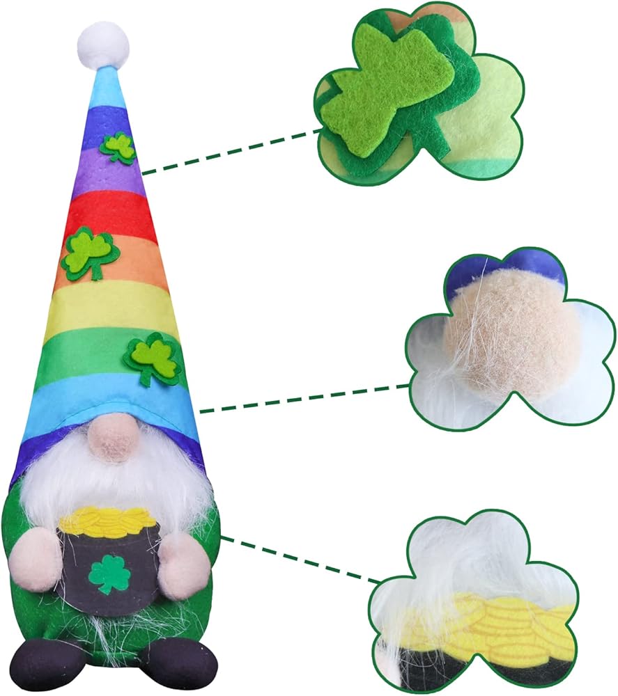 • Package Includes: You will receive 2 pcs St. Patrick's Day Gnomes, one is leprechaun gnome, the other one is rainbow gnome.