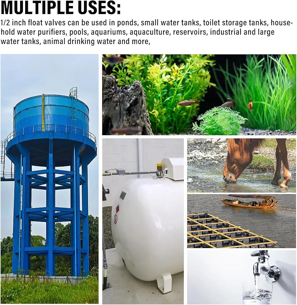 2pcs Water Tank Float Valve for Water Trough 1/2 Inch Automatic Fill Float Ball Valve For Livestock Stock Tank Switch Pool Auto Fill Float Valve Water Leveler Filler Control