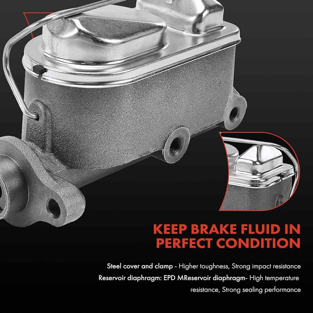 أسطوانة الفرامل الرئيسية الممتازة مع خزان وغطاء متوافق مع مركبات فورد ولينكولن وميركوري - Custom 500, LTD, Thunderbird, Continental, Mark IV, Marquis, Grand Marquis