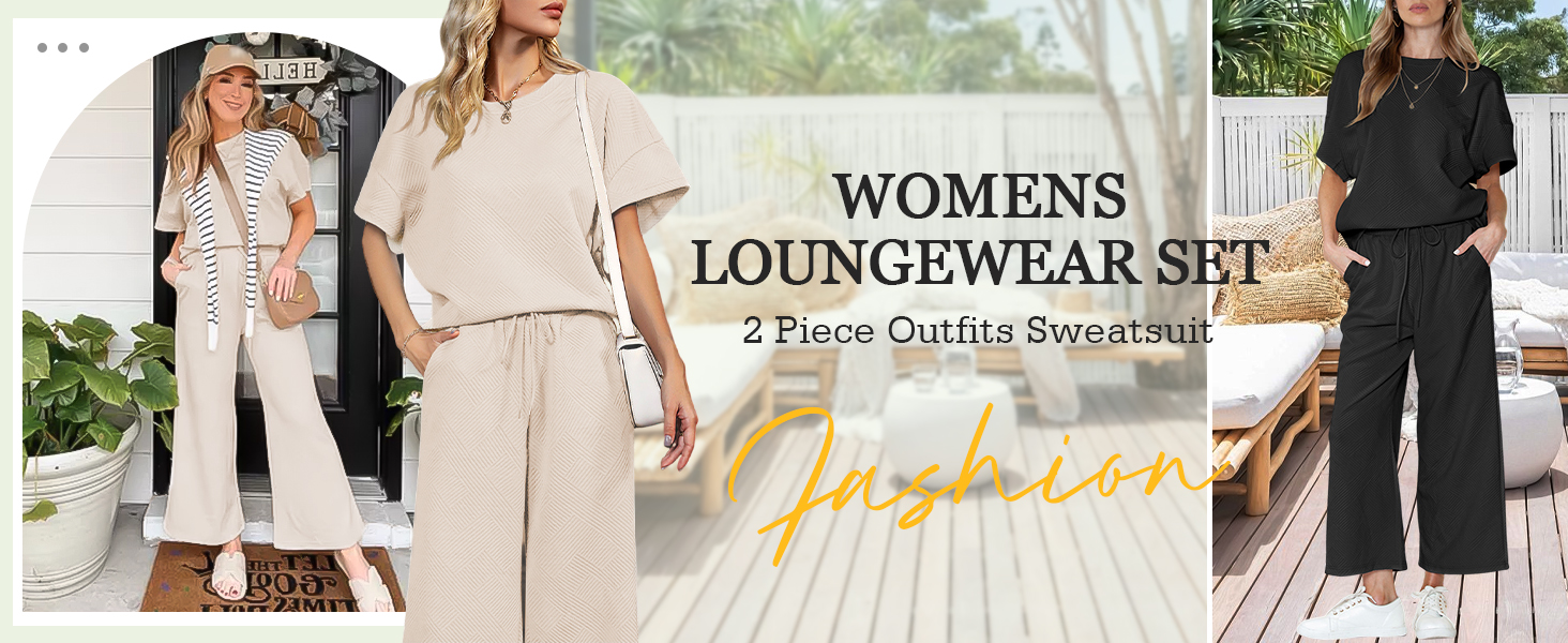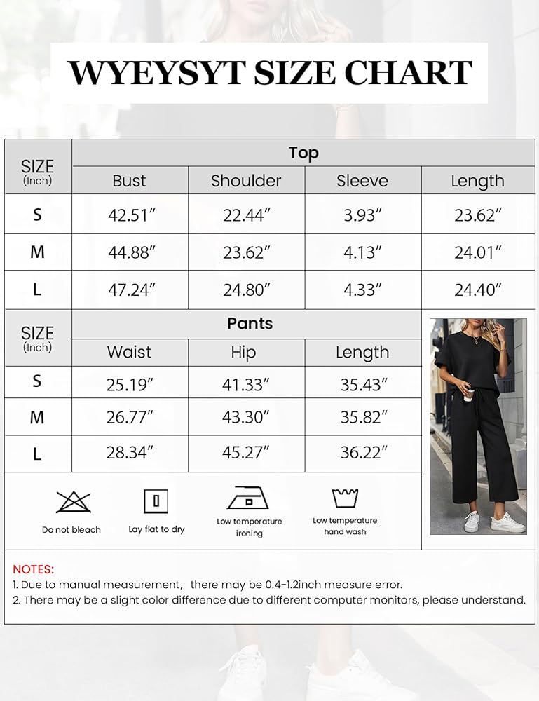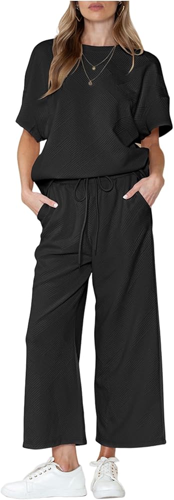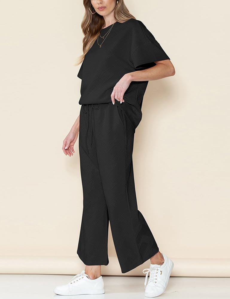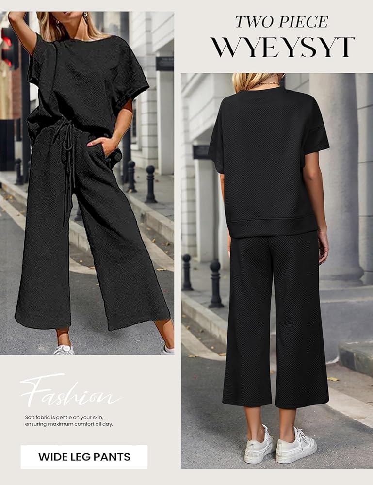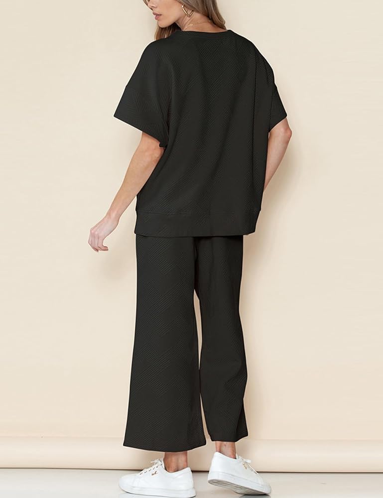 ملابس نسائية مكونة من قطعتين بدلة رياضية 3/4 بأكمام تشبه جناح الخفاش وبنطلون بأرجل واسعة 2024 أطقم صالة رياضية (أسود-L)