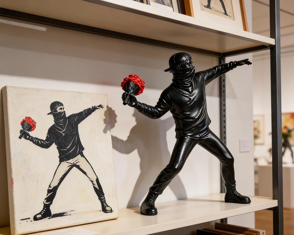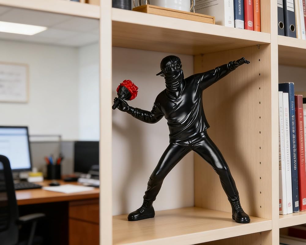 【فن استفزازي】مستوحى من رسومات بانكسي الشهيرة، يأسر تمثال "قاذف الزهور" الخاص بنا بمزيجه الآسر من السخرية والتعليقات الاجتماعية. مثالي لأولئك الذين يقدرون الفن الذي يتحدى التقاليد ويثير المحادثة.
