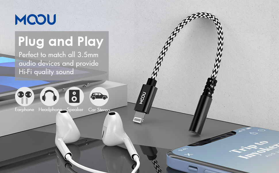 【توافق واسع】محول MOOU iPhone aux مصمم لأجهزة iOS، وينطبق على جميع أجهزة iOS 12 أو أعلى مع واجهة Lightning، متوافق مع iPhone 14,14 Pro,14 Pro Max,14 Plus,13, 13 Pro, 13 Pro Max, iPhone 12، 12 ميني، 12 برو، 11 برو ماكس، آيفون SE، آيفون X، XR، آيفون 8، 8 بلس، آيفون 7 بي، آيباد برو 10.5 بوصة، آيباد برو 12.9 بوصة (الجيل الأول/الثاني)، آيباد برو 9.7 -بوصة، آيباد إير (الجيل الثالث)، آيباد ميني 3، آيباد ميني 2، آي بود تاتش.