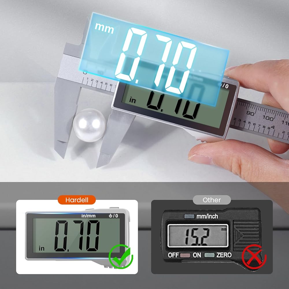 【شاشة LCD كبيرة】 استمتع بقراءة سهلة مع شاشة LCD الكبيرة على الفرجار الرقمي الخاص بنا، مما يوفر قراءات واضحة وبدون مجهود.