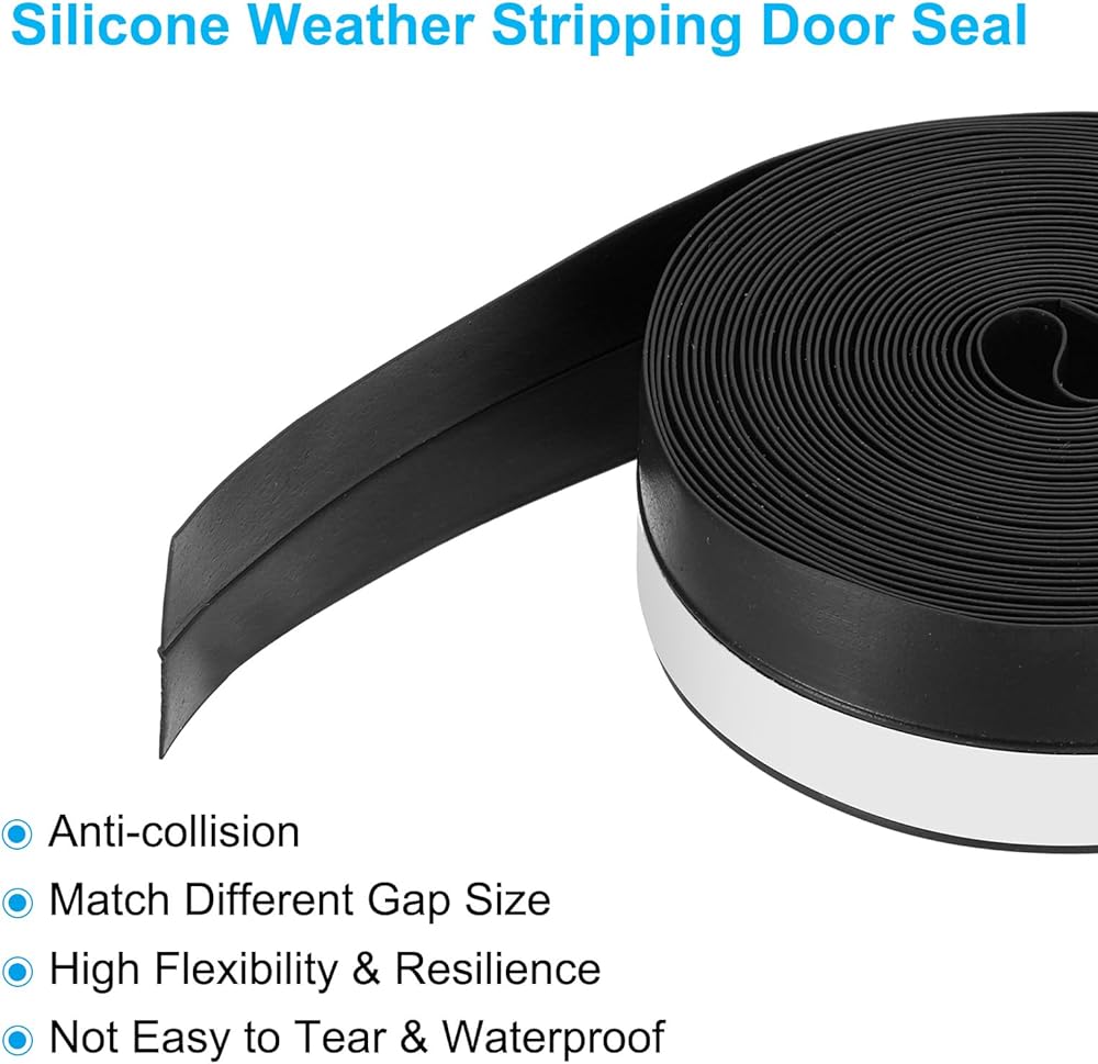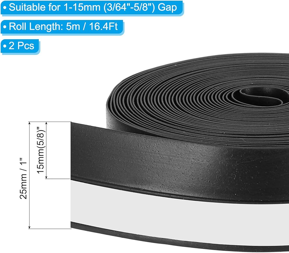 • Specification: Material: Silicone; Color:Black; Roll Length: 5m/16.4Ft; Size: 25 x 0.8mm/1 x 1/32 inch (WxT); Applicable Gap Size: 1-15mm/3/64"-5/8"; Package List: 2 Roll x Door Weather Stripping