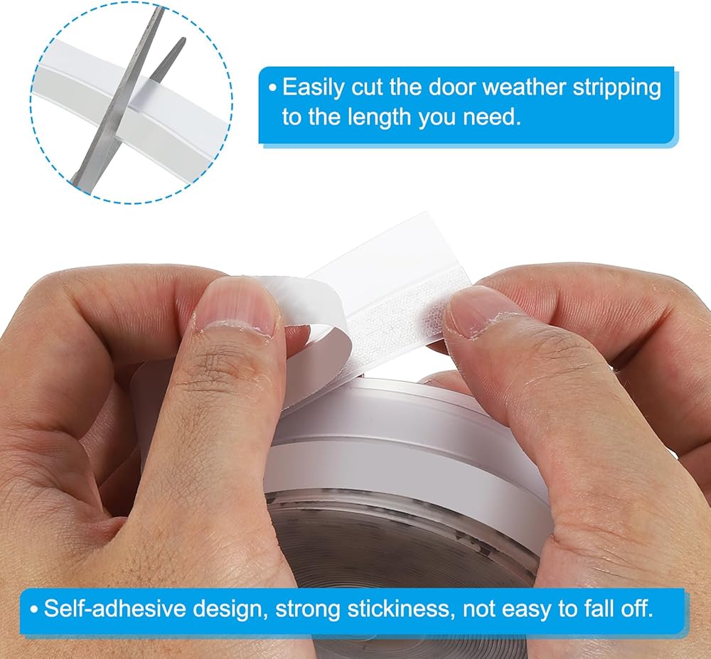 • Instruction: The door weather stripping uses a self-adhesive design, measure the length of the area that needs to be sealed, cut out the required length, peel off the backing and stick the sealing strip to the corresponding position.