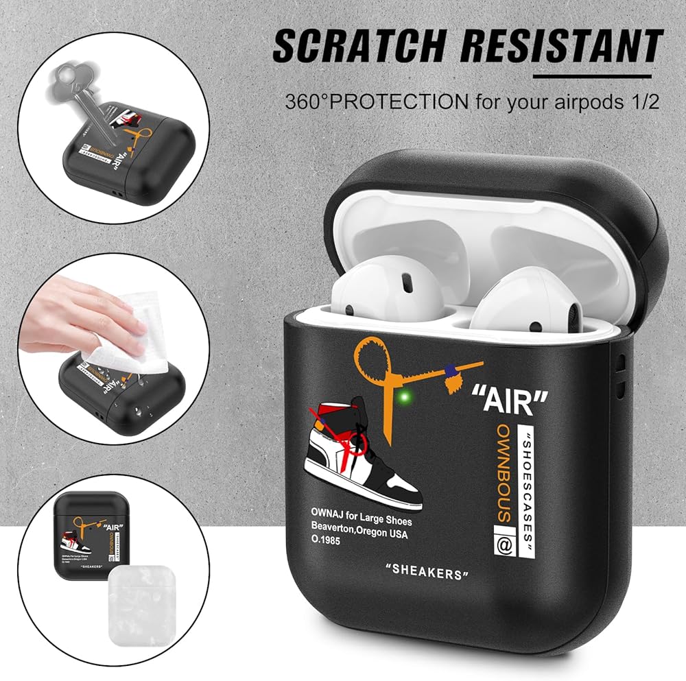 【حماية فائقة】توفر لك مادة البولي كربونات ذات الملمس الحبيبي ثلاثي الأبعاد لمسة مثالية، وسهلة التنظيف للبقع السطحية، كما أن الكمبيوتر الممتص للصدمات يحافظ على حافظة Airpod الجيل الأول والثاني آمنة حتى من أسوأ السقطات والتأثيرات.