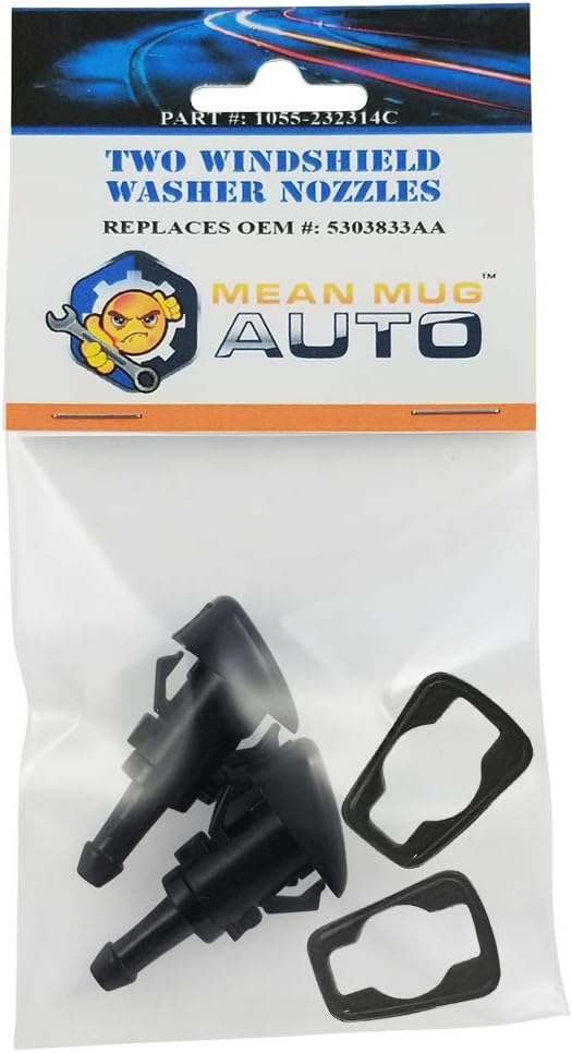 1055-232314C (اثنان) فوهات غسيل الزجاج الأمامي - متوافقة مع كرايسلر ودودج وجيب ورام - تحل محل OEM #: 5303833AA