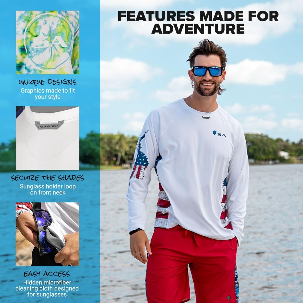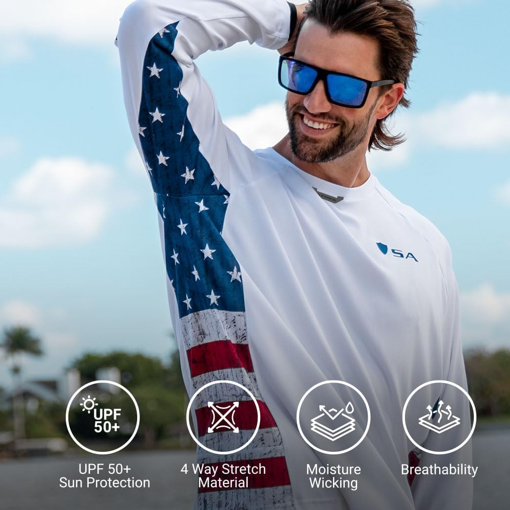 • FIND YOUR OUTDOOR ADVENTURE WITH SA: Our 100% polyester long-sleeve sun shirts or fishing shirts are made for all day comfort and help as men's rash guard shirts. They're perfect for everyday activities or outdoor activities like fishing, swimming, hiking, cycling, or running.