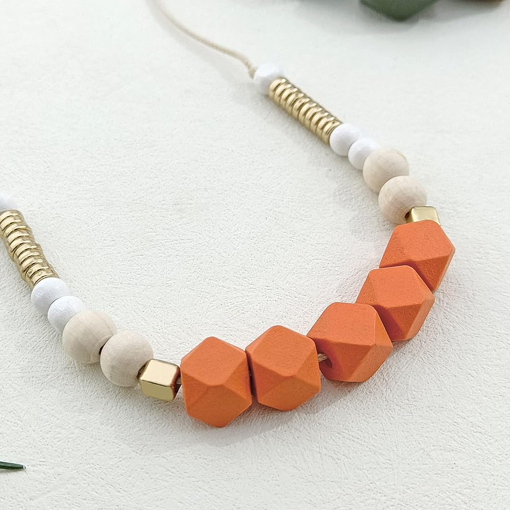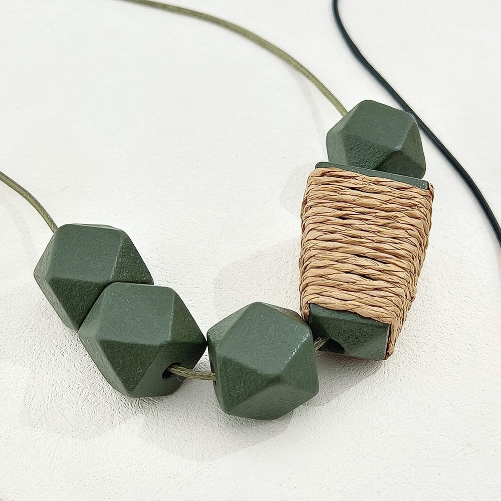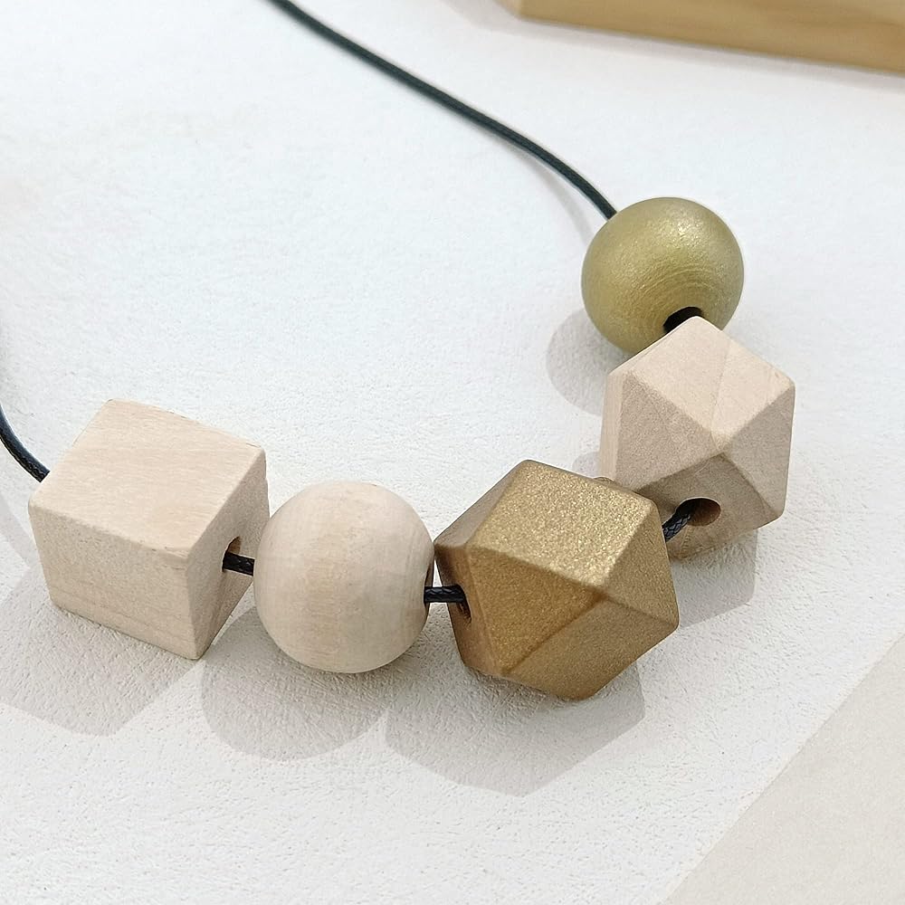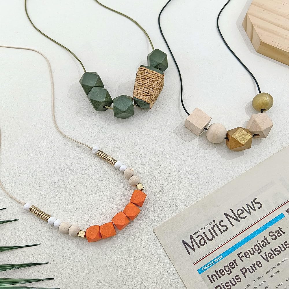 مجموعة قلادة طويلة: تحتوي المجموعة على 3 قطع من القلائد الخشبية بأشكال مختلفة. بما في ذلك الدوائر والأوراق ذات الطبقات والأشكال الهندسية العادية المتعددة والأقراص والمستطيلات.