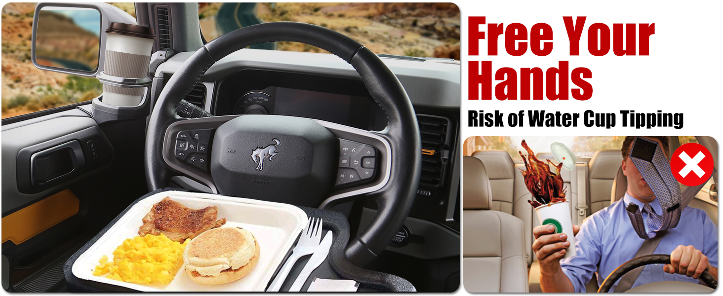 مساحة إضافية: استمتع بمساحة تخزين إضافية للأكواب والمشروبات، مثالية للوجبات أو المشروبات أثناء التنقل. إنه حامل مشروبات مريح، خاصة لمحبي الإفطار والغداء في السيارة.