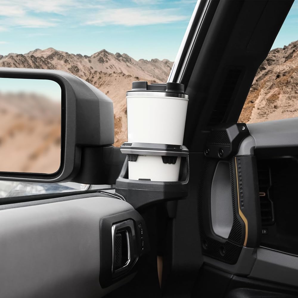 الإعداد المخصص: حامل الأكواب متوافق مع أبواب Ford Bronco 2024 2023 2022 2021 2/4، وليس لـ Bronco Sport.