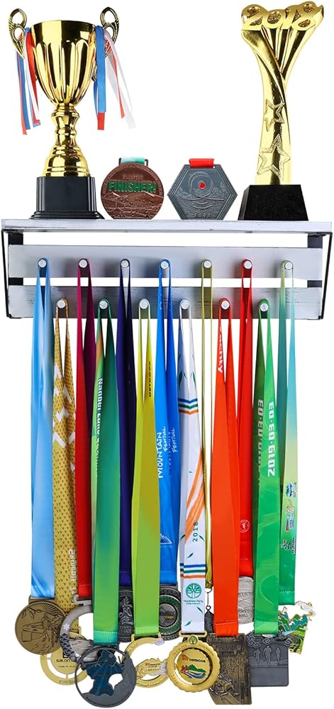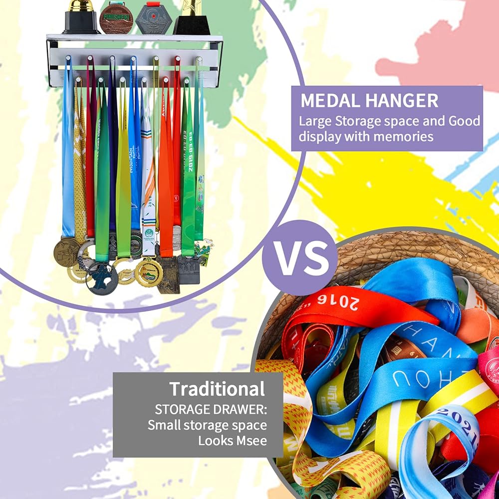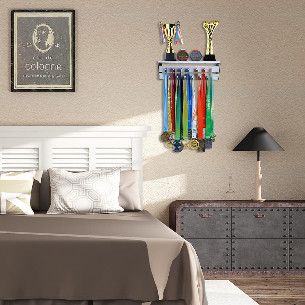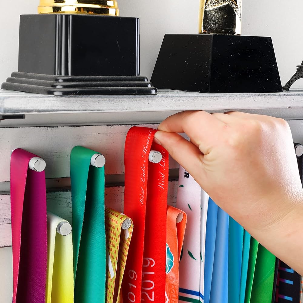 【رائعة لجميع الجوائز والميداليات】شماعة الحائط المثالية للميدالية والكأس وعرض الميداليات لجميع أنواع الرياضيين. رائعة لعرض شريط الجوائز، وتخزين الجوائز، وجميع شماعات عرض الميداليات الرياضية!