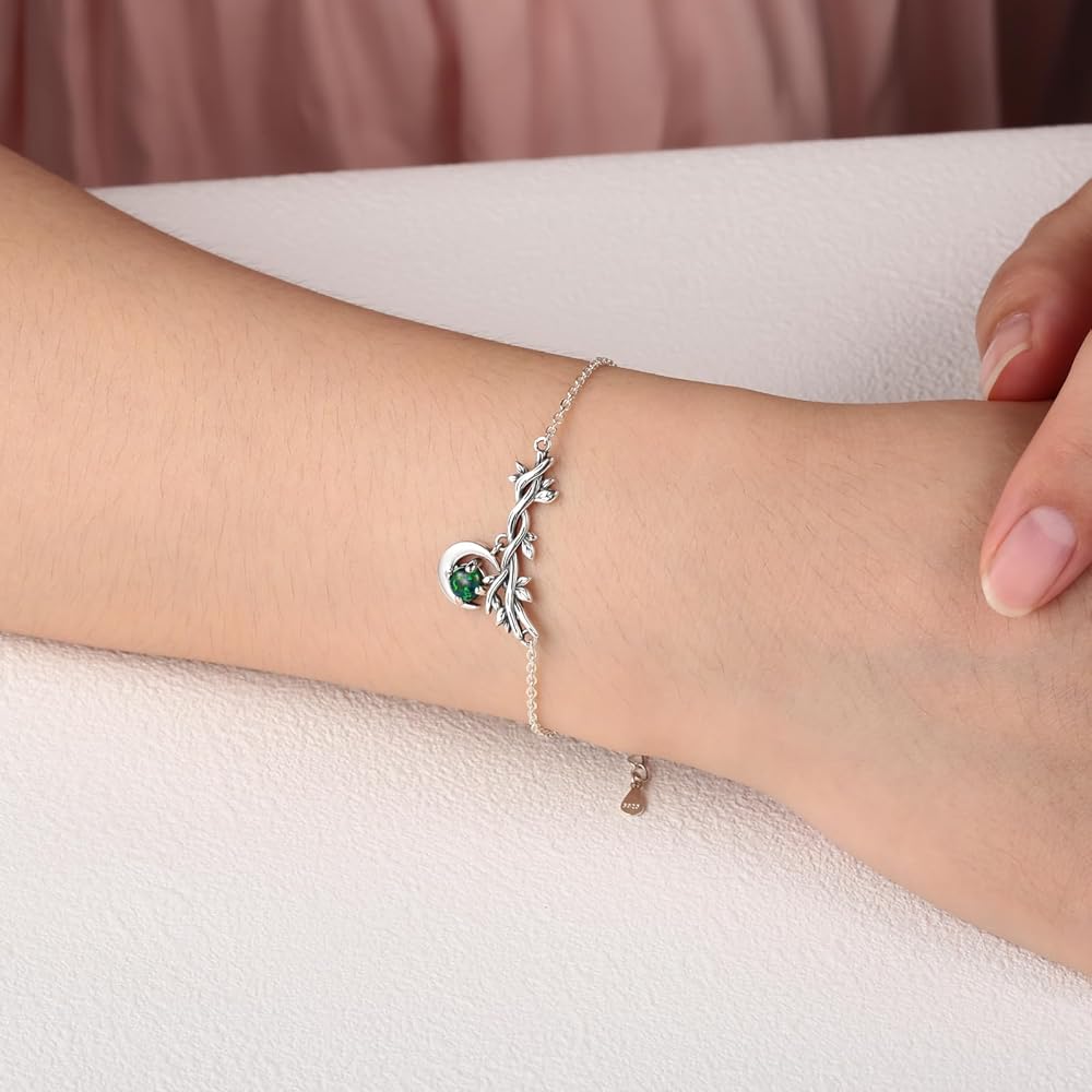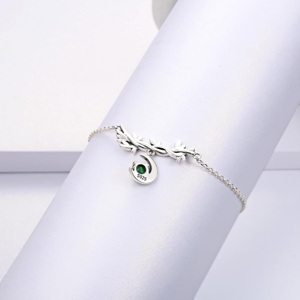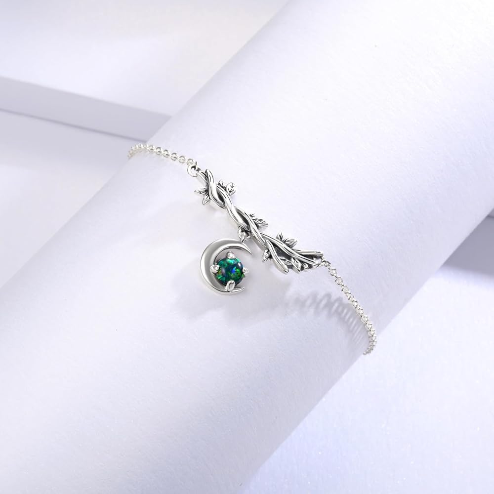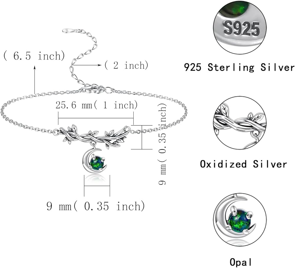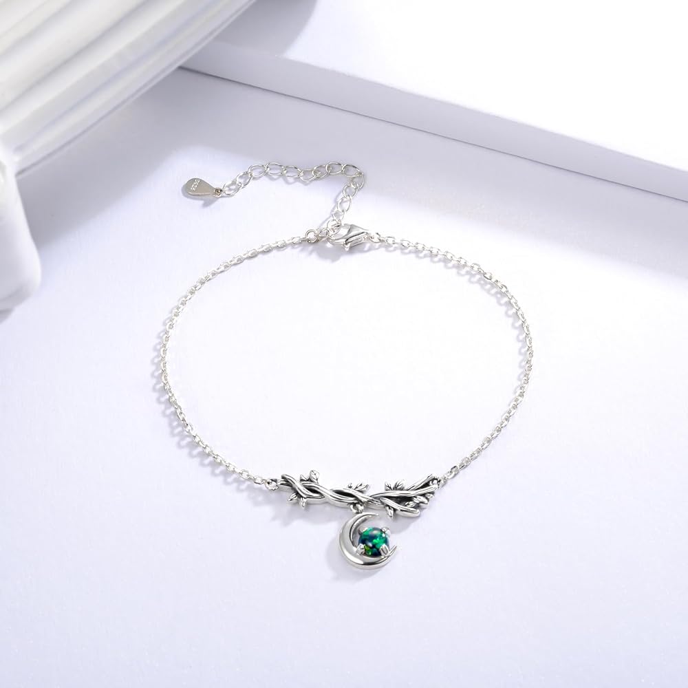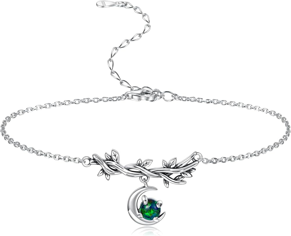 925 Sterling Silver Opal Vine Bracelet - Dainty Crescent Moon Bracelets/Anklet Engagement Wedding Gift for Girlfriend Daughter Her, Adjustable Chain 6.5"+2" Extend