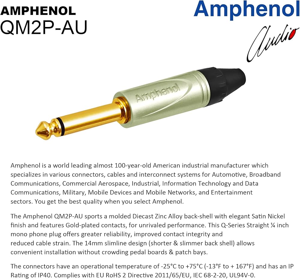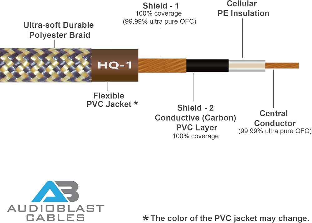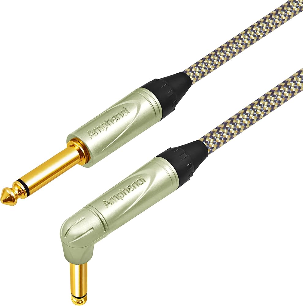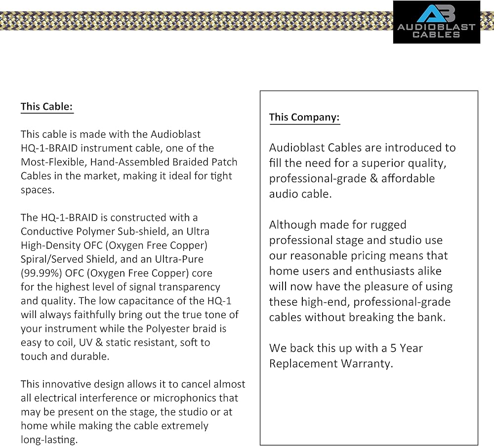 10 Foot - Audioblast HQ-1-BRAID (Grey + Tan) – Durable & Flexible - Dual Shielded (100%) - Guitar Bass Instrument, Professional Cable with Amphenol QM2R-AU ¼ Inch Right-angled Gold Mono Phone plug and Amphenol QM2P-AU ¼ Inch Mono Gold Phone plug. +++ The Most-Flexible, Hand-Assembled Braided Cable in the Market with Ultra-Soft, Easy to Coil, Extremely Durable Polyester Braid. Unlike Nylon Braids which proliferate the market, Polyester Braids are more Eco-Friendly (i.e.: Recyclable), Colors do not fade quickly, and Static Resistant +++ THE HQ-1 IS A FLEXIBLE CABLE & CAN BE TWISTED & COILED EASILY BETWEEN YOUR EQUIPMENT.