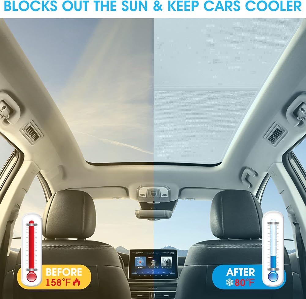 ✅حماية فعالة من أشعة الشمس: تحجب مظلة الشمس الأشعة الضارة، وتقلل من تراكم الحرارة، وتحسن الراحة العامة لكل من السائق والركاب. فهو يحافظ على برودة المقصورة الداخلية ويقلل الوهج ويعزز الرؤية أثناء القيادة.