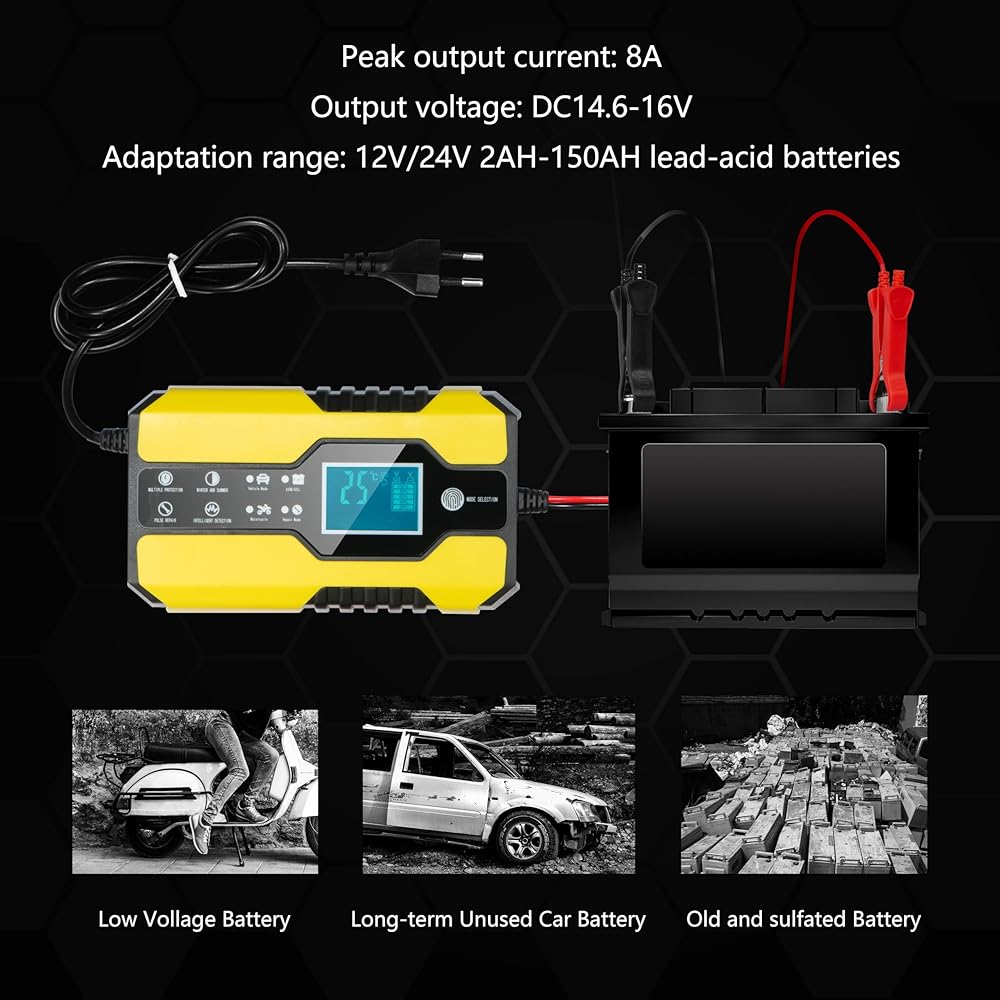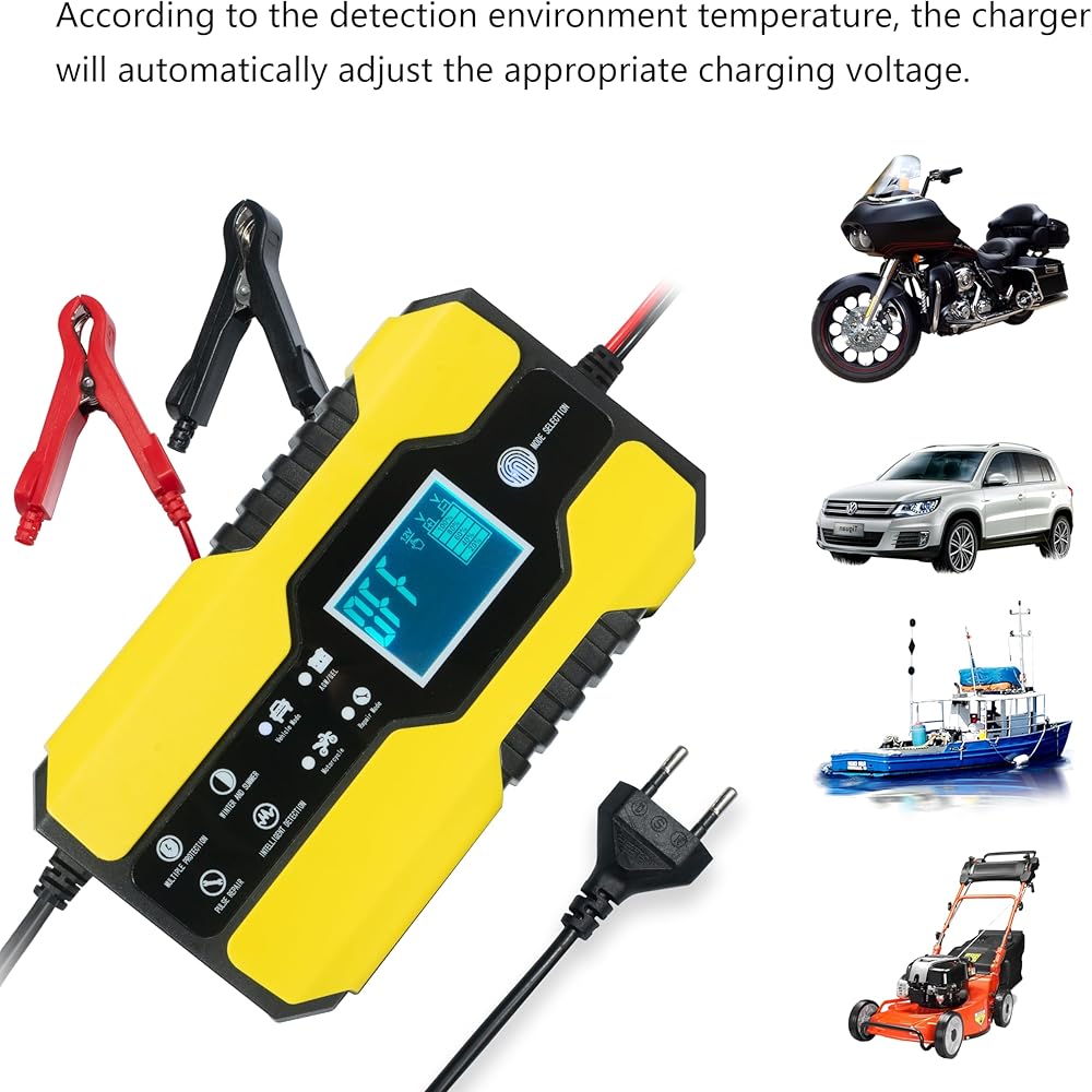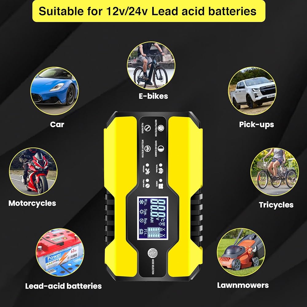 • شاحن ذكي متعدد: مصمم لجميع أنواع بطاريات الرصاص الحمضية 12 فولت و24 فولت ضمن 6-150 أمبير (12 فولت) و6-100 أمبير (24 فولت)، بما في ذلك أنواع بطاريات GEL وAGM وWet وEFB وMF وSLA (باستثناء الليثيوم). البطاريات). متعدد الاستخدامات في تطبيقه، فهو مثالي للسيارات العادية وبطاريات التشغيل والتوقف والمركبات الكهربائية والدراجات النارية والدراجات الإلكترونية والمركبات الزراعية المختلفة والشاحنات ومركبات الطرق الوعرة والقوارب واليخوت والقوارب البخارية وجميع أنواع الرصاص الأخرى. البطاريات الحمضية.