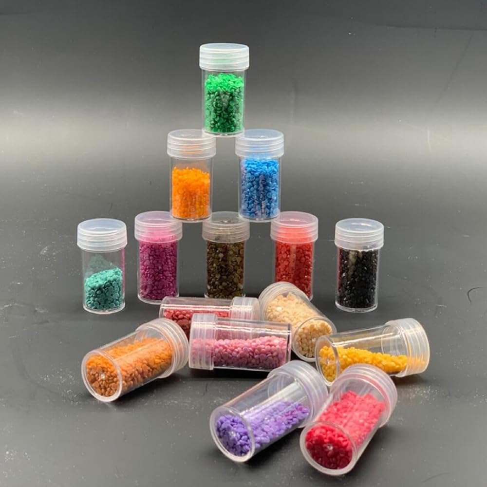 60 independent slot design - This storage organizer includes 60 individual mini bottles. Each mini bottle has a separate lid to ensure it is tightly closed and does not spill. 60 small containers can hold enough diamonds of different colors. Equipped with blank label stickers, mark the grid with color codes or custom names to classify your items, helping you organize and find diamonds with color codes more easily.