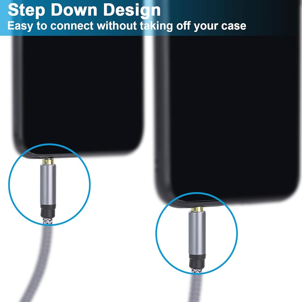 Connector of Feodaa audio cable has been slightly extended to fit more devices model and phone cases. Its intelligent step-down design provides a secure fit with phones while case on.