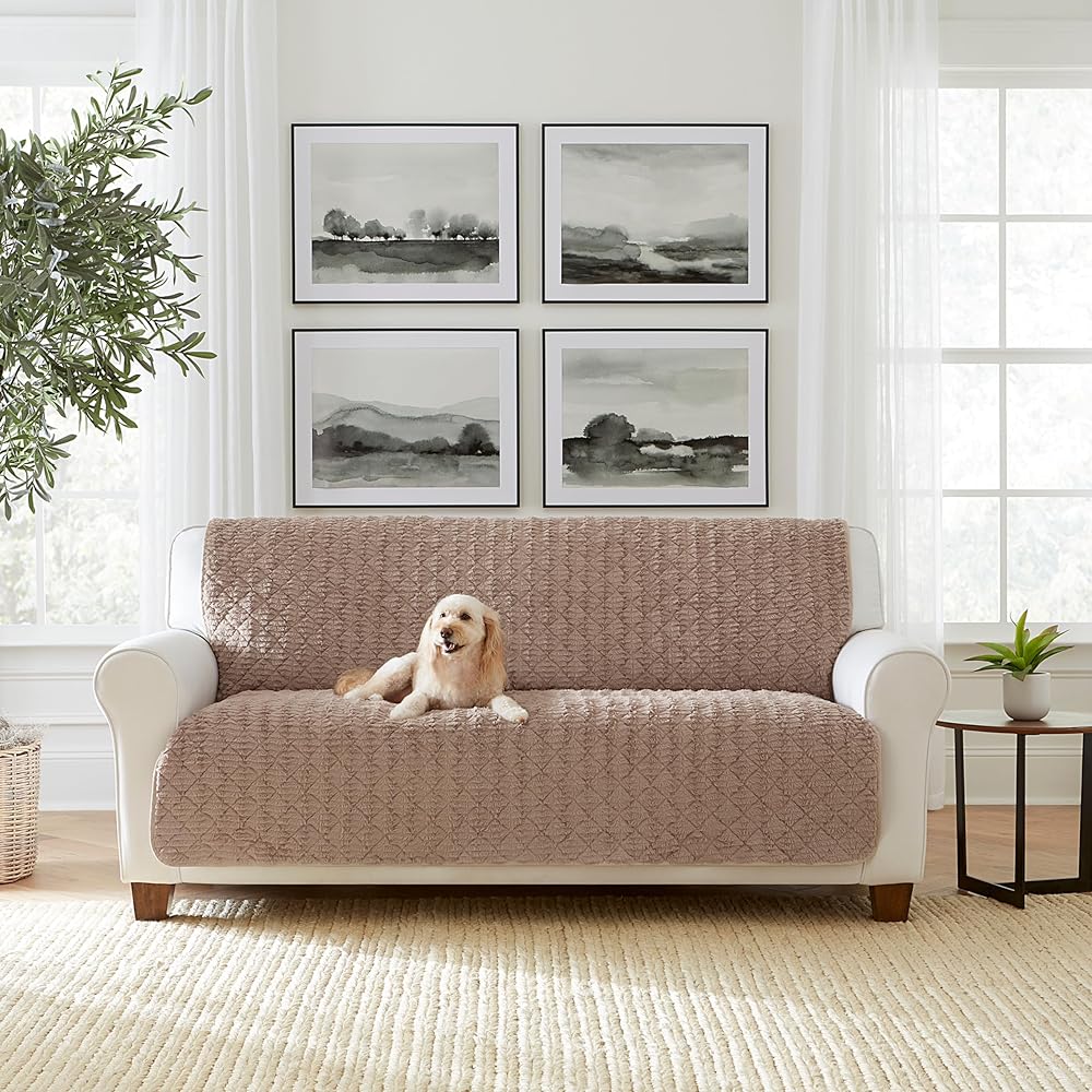 فراء مبطن من SureFit Alex، واقي للأثاث، غطاء متعدد الاستخدامات للحيوانات الأليفة، بطول 68 بوصة × عرض 75 بوصة، أسمر ضارب للصفرة
