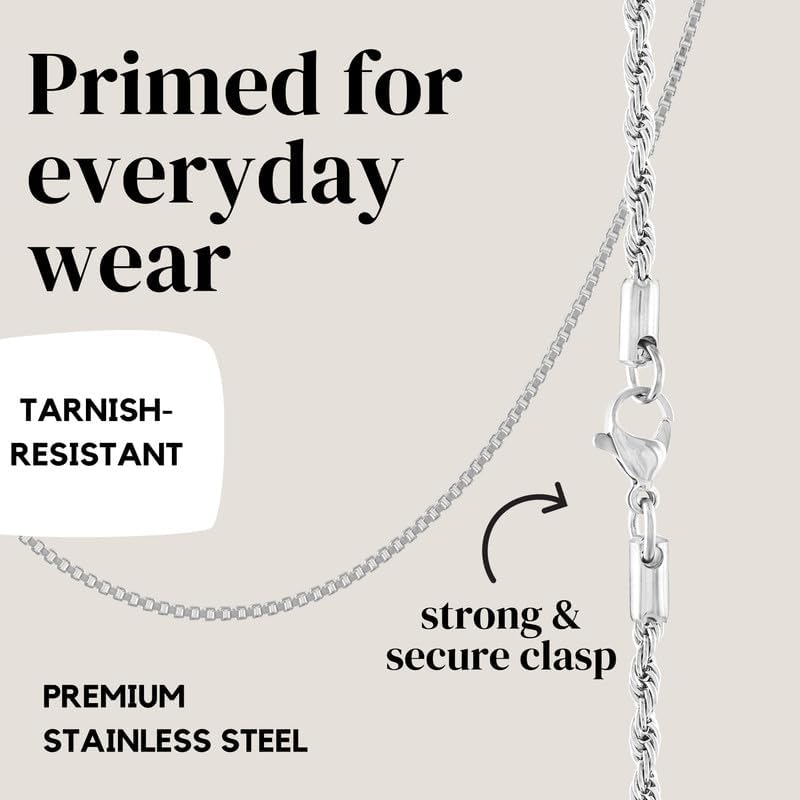 • Versatile Options: Choose between the sleek box chain or the textured rope chain for any occasion. Both are perfect for wearing alone or with a pendant.