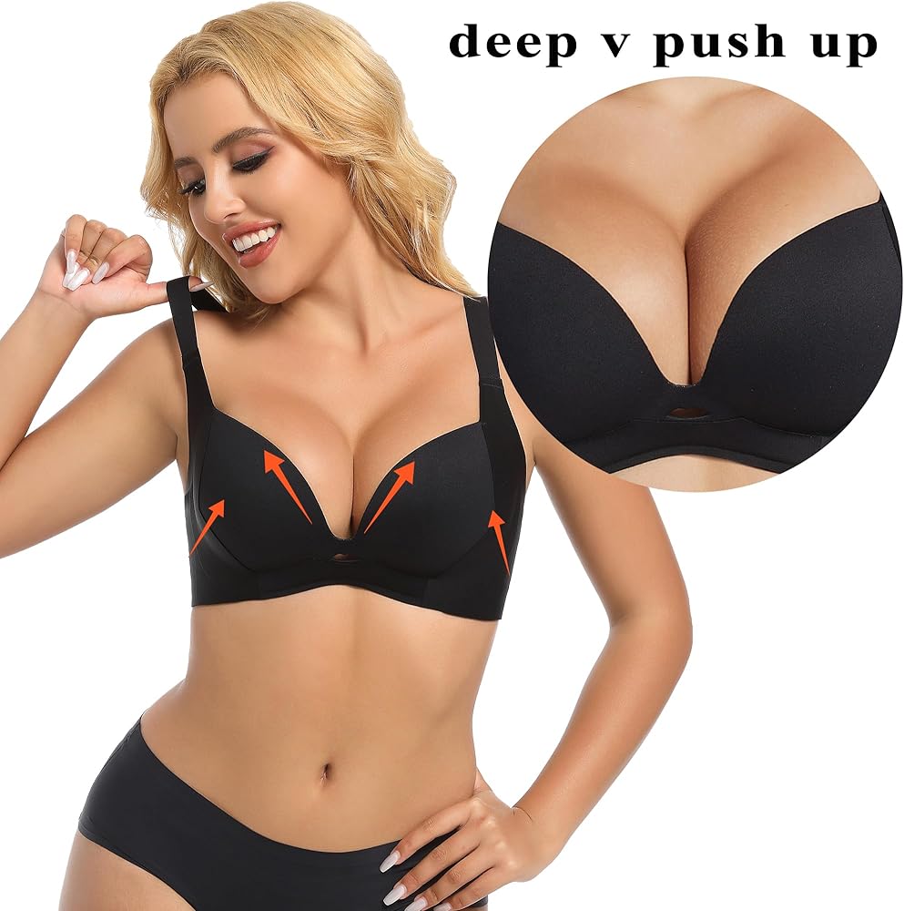 【حمالة صدر عميقة على شكل حرف V】حمالات صدر خالية من الأسلاك مصممة بفتحة رقبة عميقة توفر دعمًا رائعًا وانقسامًا مثيرًا. مناسب لمقاسات الكوب من A إلى C. مثالي للتنسيق مع الملابس العميقة على شكل حرف V. مثالي للعديد من المناسبات مثل الصالة أو المواعدة أو العمل أو الحفلات.