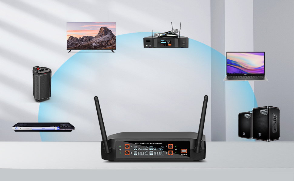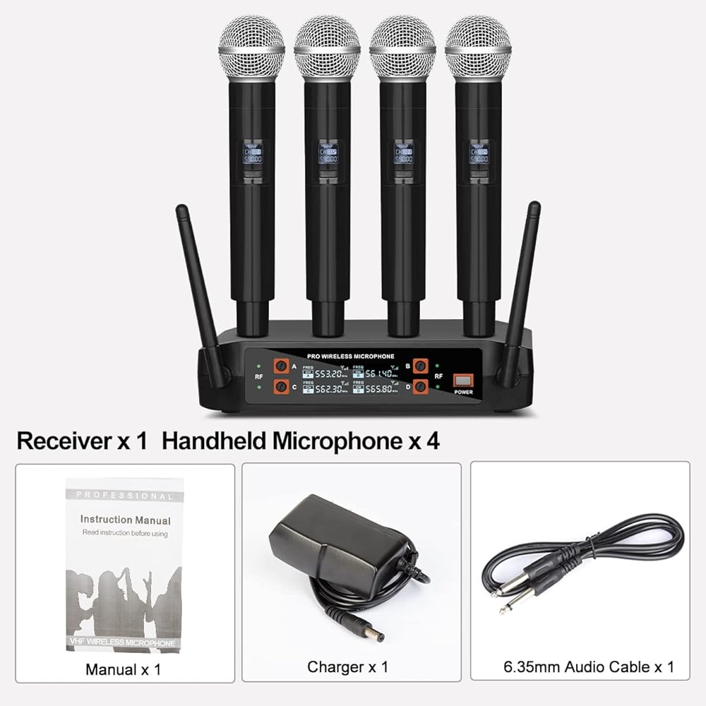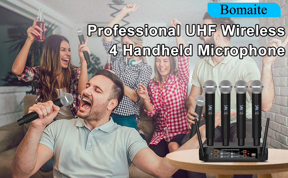 نظام ميكروفون لاسلكي BX4 UHF Pro مع 4 أجهزة محمولة، نطاق 165 قدم، لأداء المسرح، خطاب المؤتمر، الكاريوكي العائلي، مشهد الزفاف