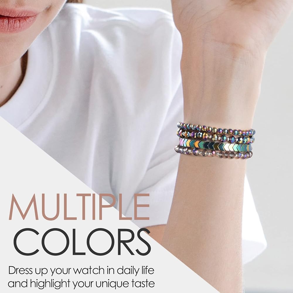 • ⌚【Perfect Fit】:This elegant beaded bracelet fits for 6"-6.9" wrist females. This MOFREE for Fitbit Versa 4/Fitbit Versa 3/Fitbit Sense 2/Fitbit Sense Bands bracelet with durable elastic rope stretch over the hand and fit snugly around the wrist, easy to wear and adjust, no buckle needed. Perfect locks onto your watch Interface precisely and securely.