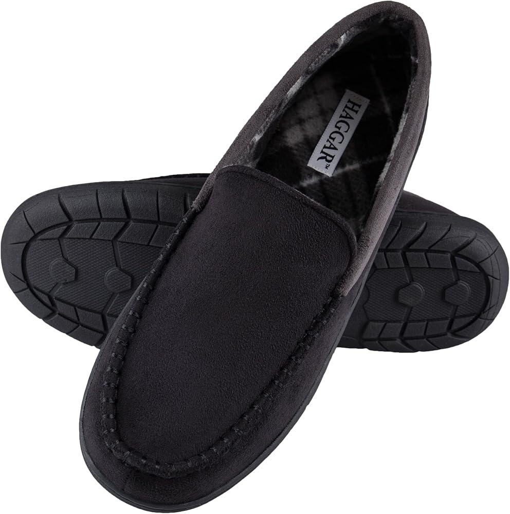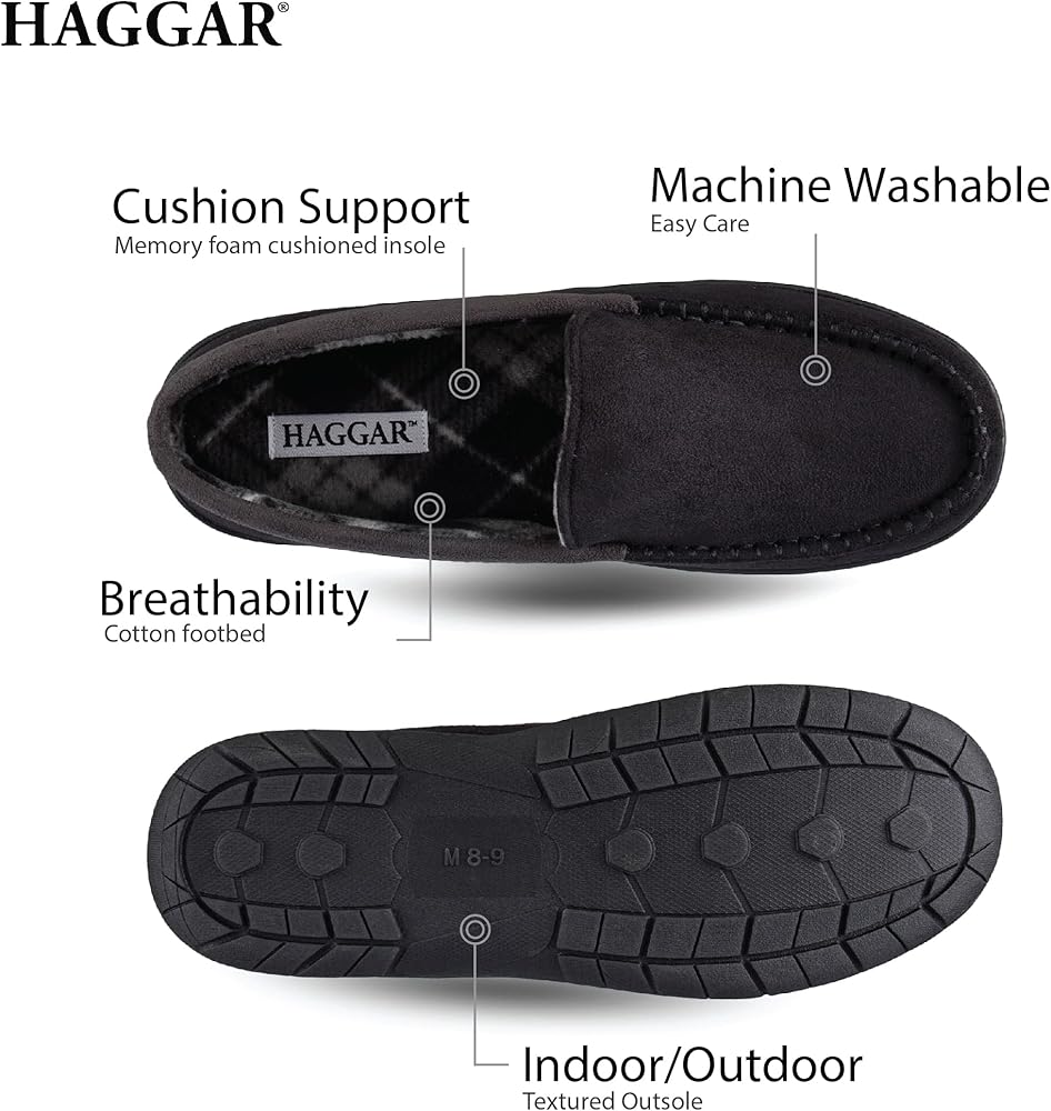 CLASSIC HAGGAR STYLE: When you see the Haggar name, you know you can count on exceptional style, quality, and flexibility. World class comfort and iconic men's style combine to give you this cozy slipper. Pair with your favorite Haggar pants to complete your work-from-home look.