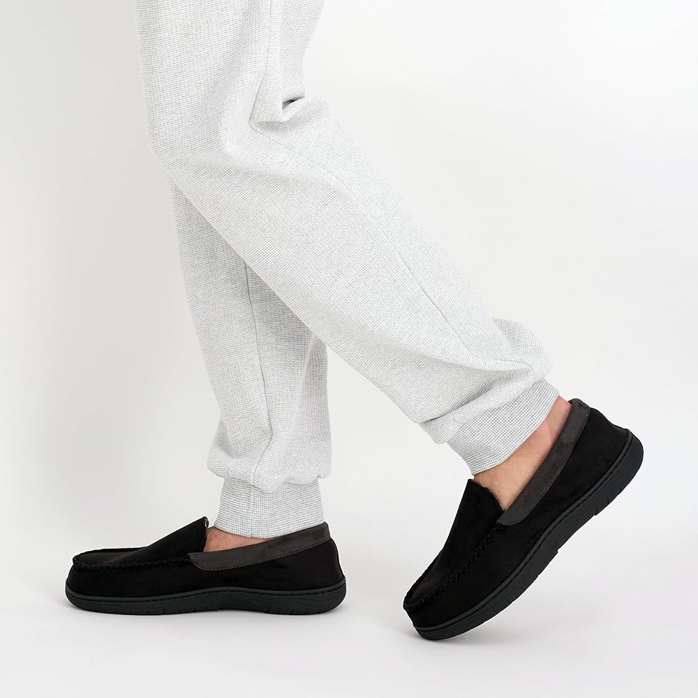 INDOOR/OUTDOOR USE: With a solid sturdy rubber sole, these slip-ons are ideal for both indoor and outdoor use. They are slip-resistant and high quality, which means they will stay secure on your feet no matter where you are going. Drive to the grocery store, walk to the neighbors', or simply stay inside to watch your favorite show in these everyday slippers.