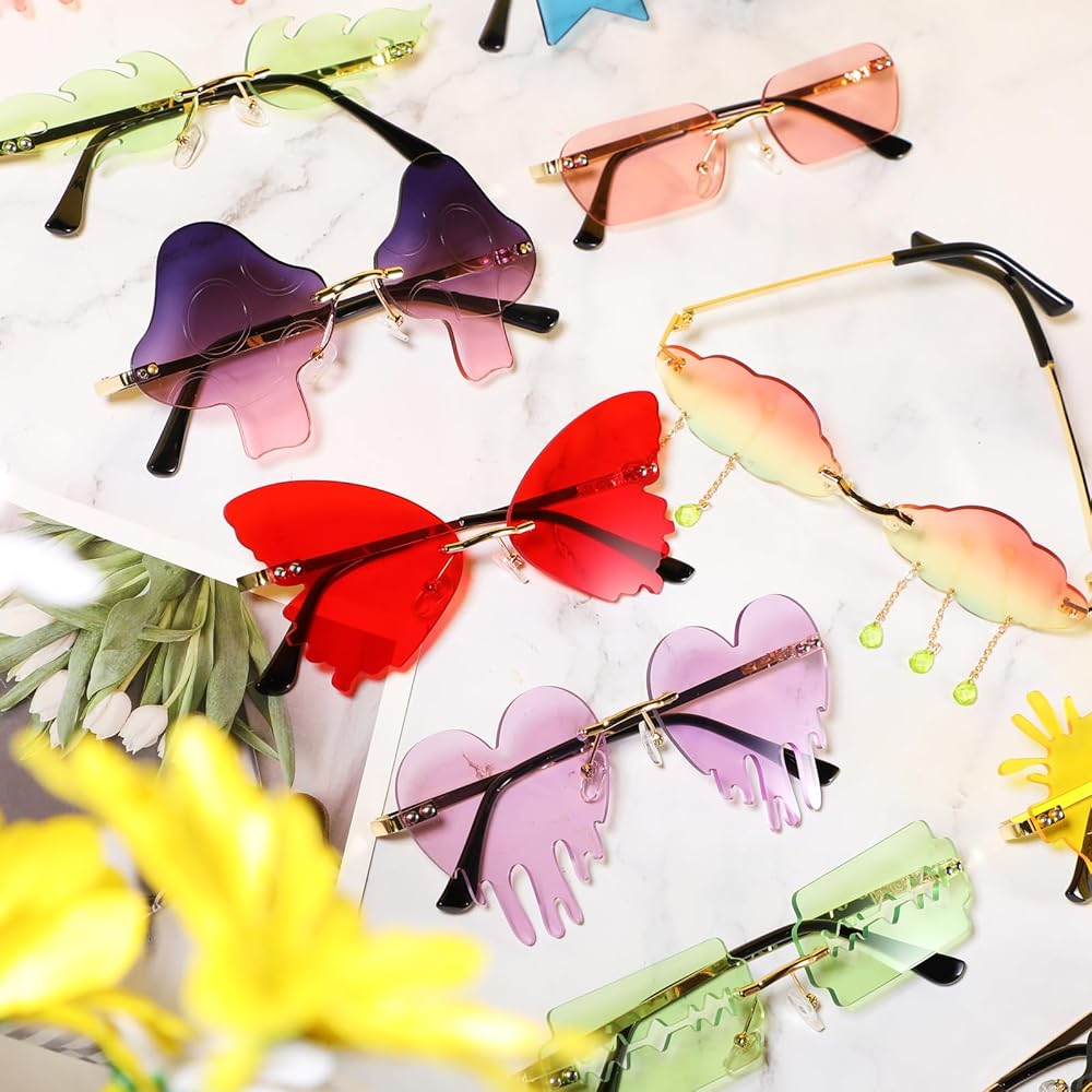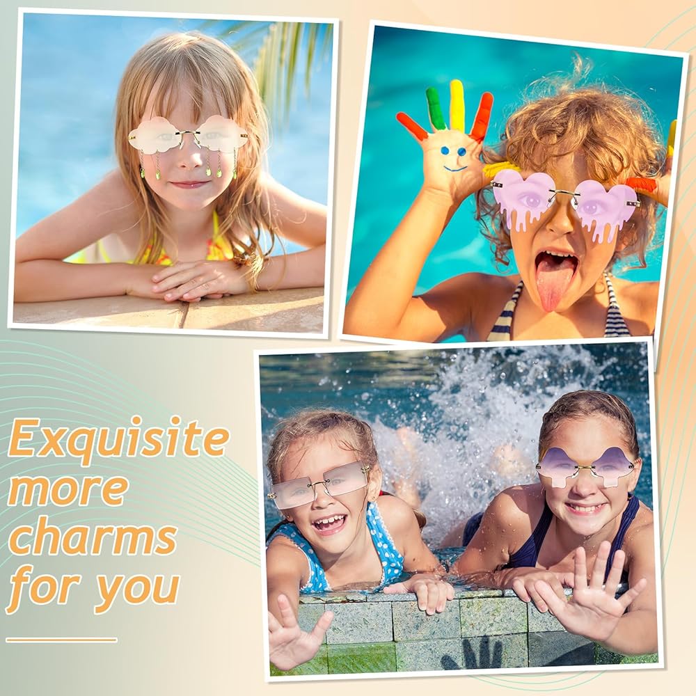 Our frameless sunglasses are designed with 16 kinds of styles, lovely heart shape, shiny star shape, cool flame shape, fresh cloud shape with raindrops and more stylish styles, without frames, worn with comforts, ideal for a long time wear.
