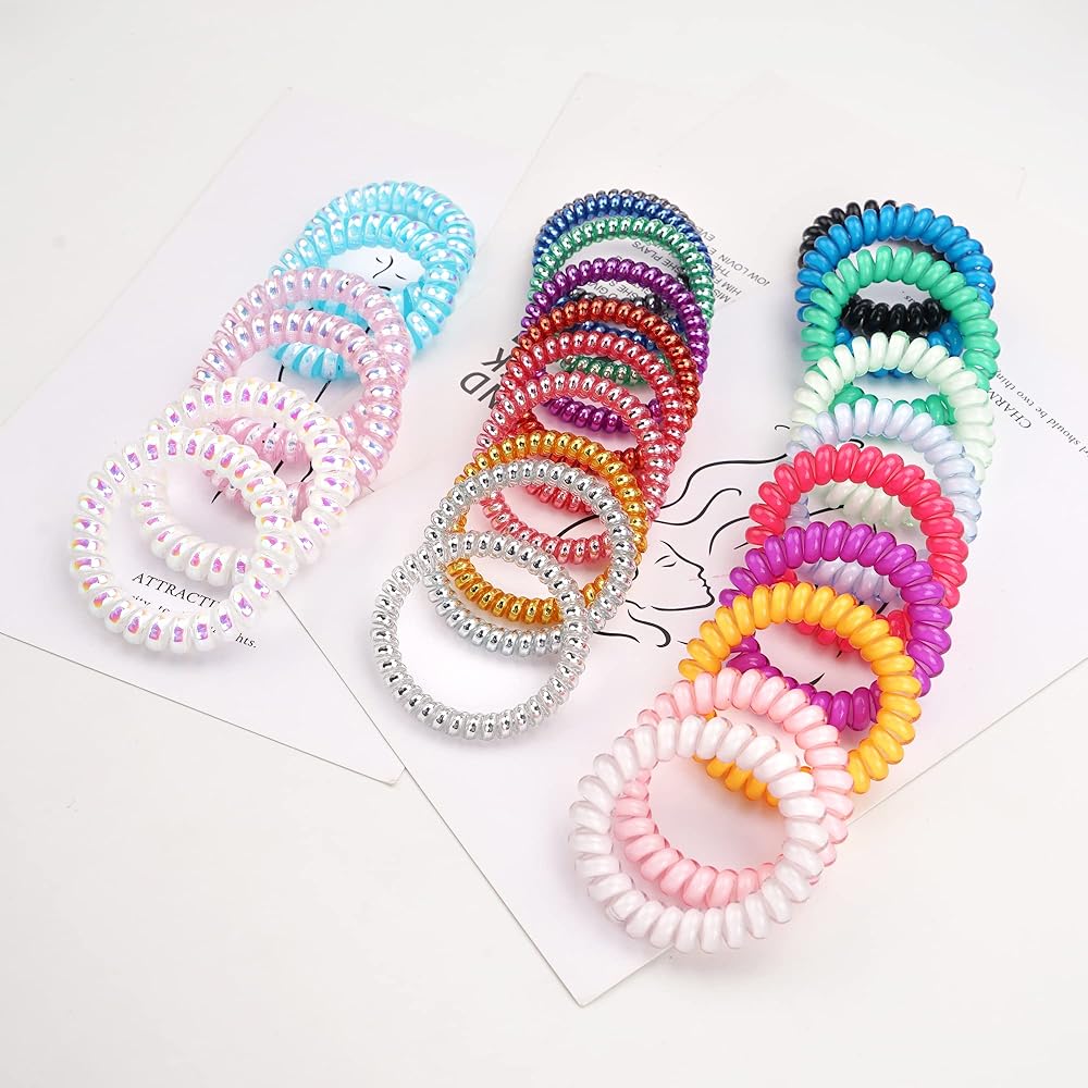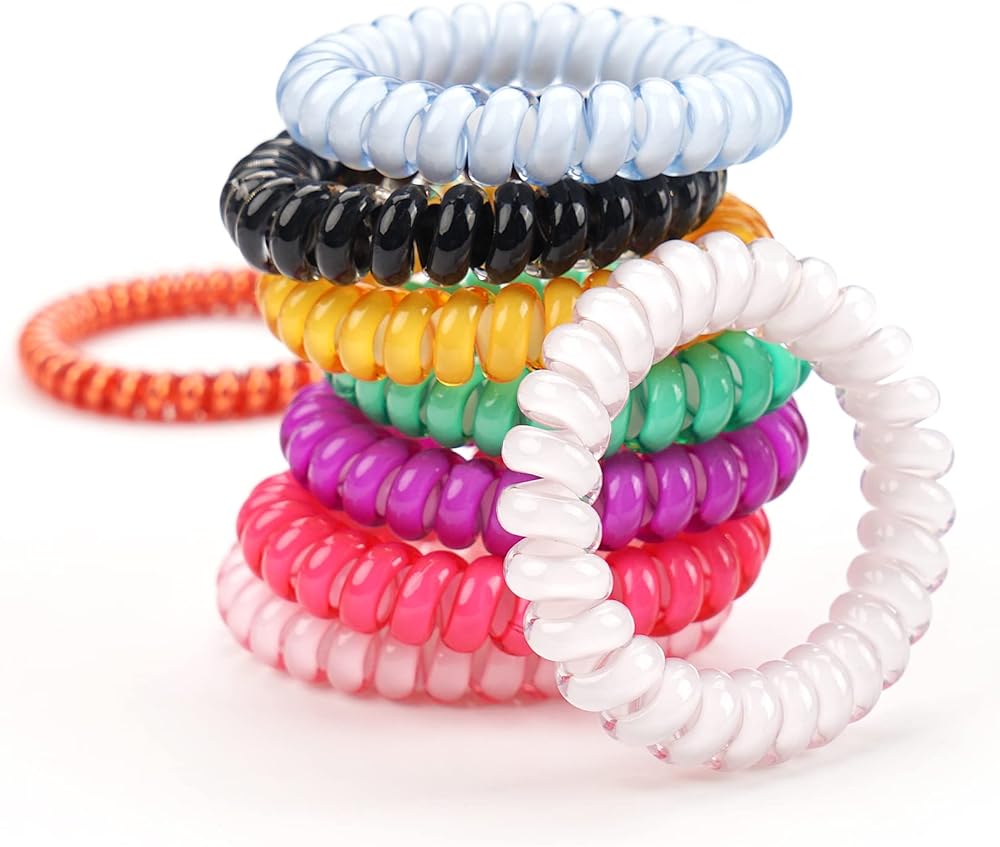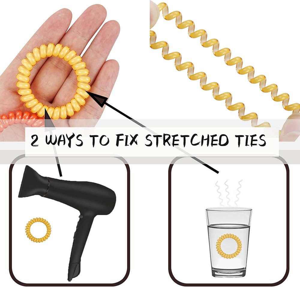 【ربطات شعر مقاومة للماء للنساء والفتيات】ربطات الشعر على شكل ملف الهاتف غير ماصة، ولا يوجد شعور رطب سيئ عند السباحة أو الاستحمام. بعد استخدامها لفترة طويلة، ما عليك سوى نقعها في كوب من الماء الدافئ أو استخدم مجفف الشعر الساخن لترطيبها. جعله استعادة الحجم الأصلي.