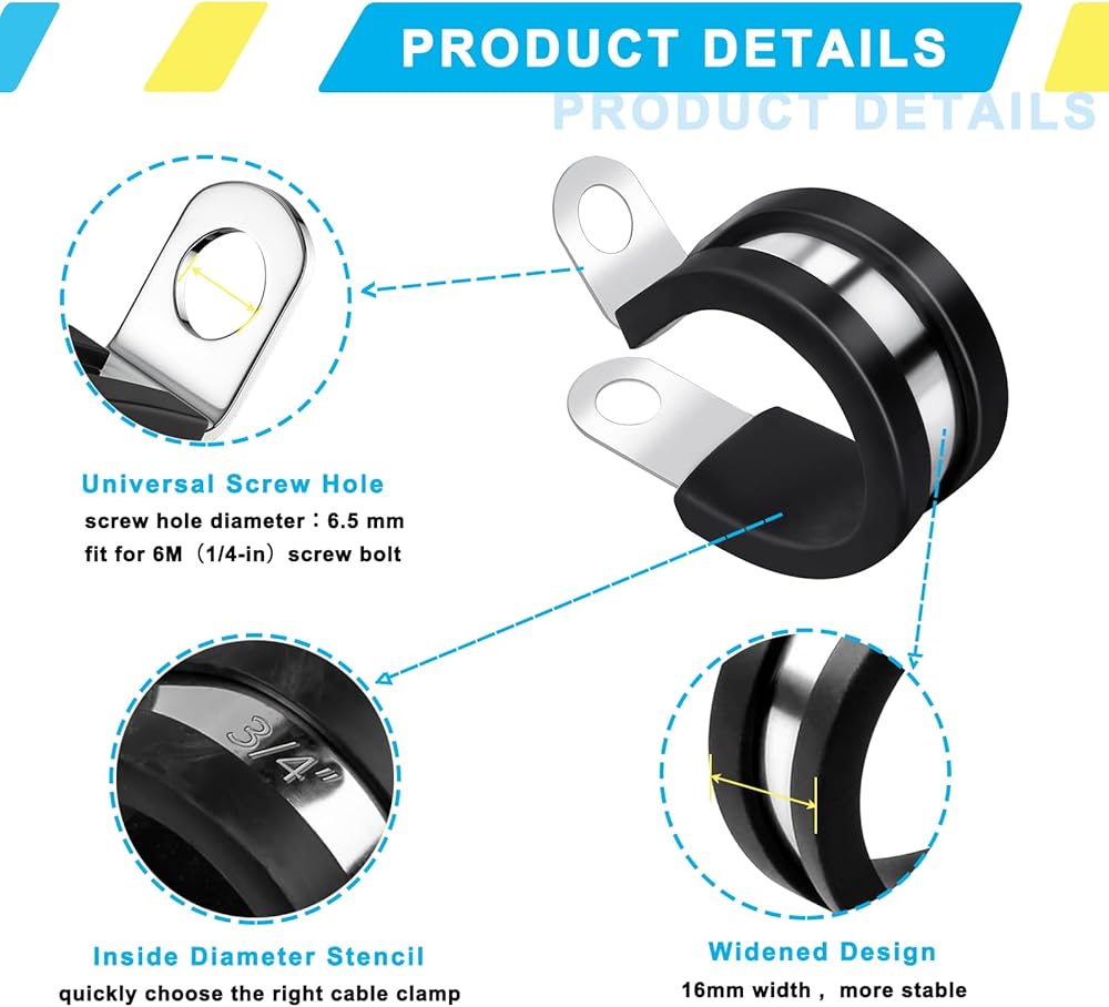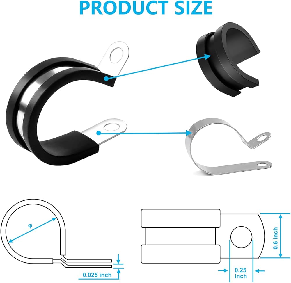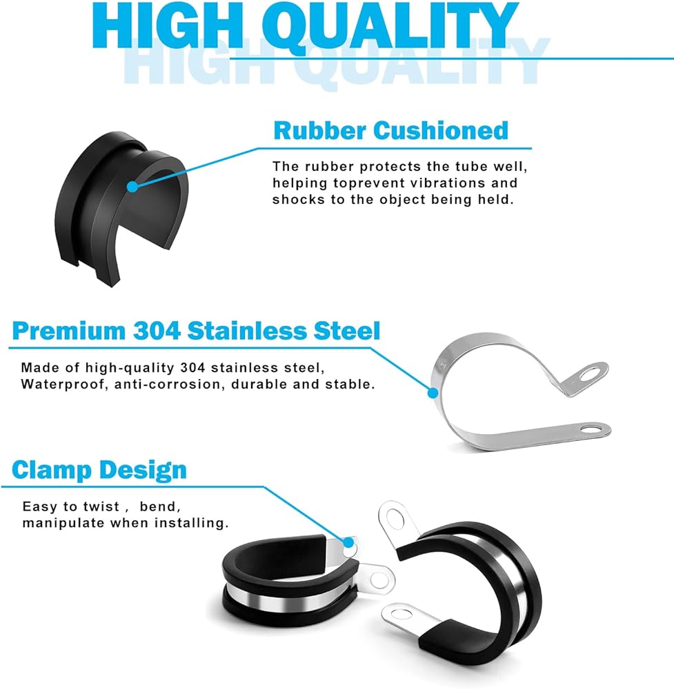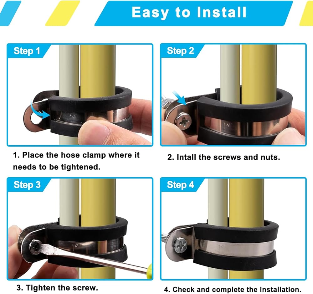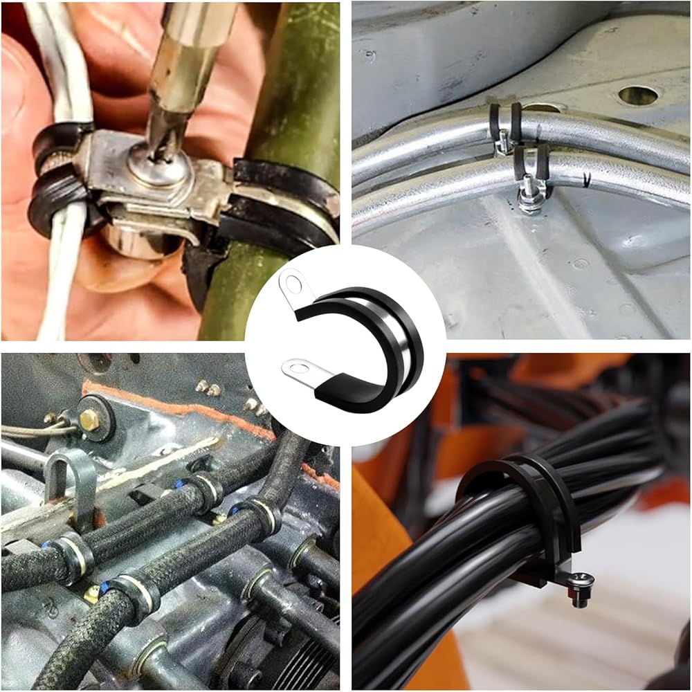 🍀 Qovydx 1-3/4 Inch Cable Clamps Stainless Steel Rubber Cushioned Insulated Clamp, Metal Clamp, Tube Holder for Tube, Pipe or Wire Cord Installation.